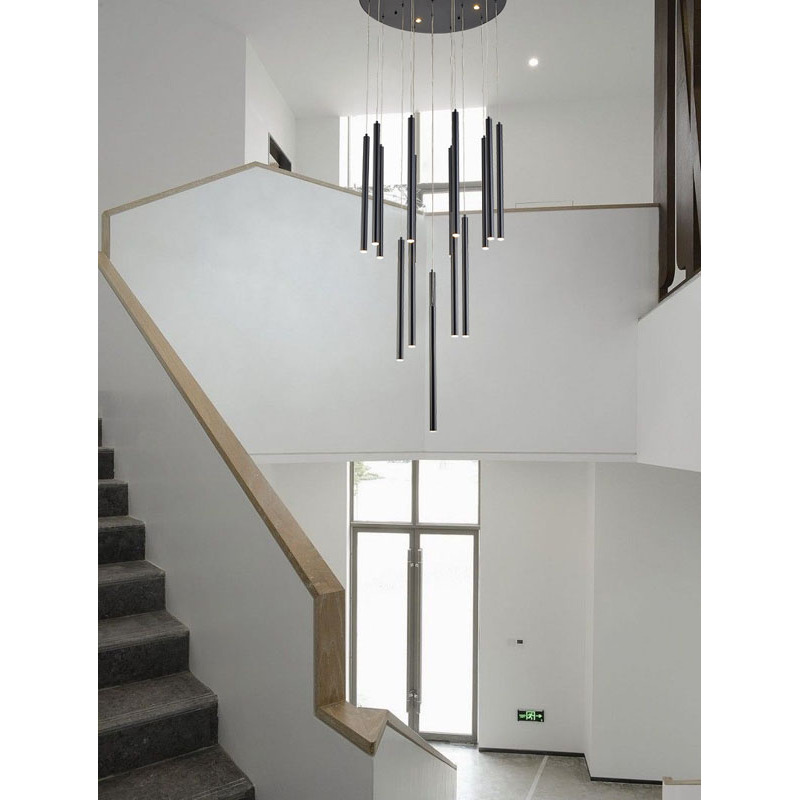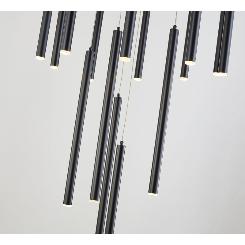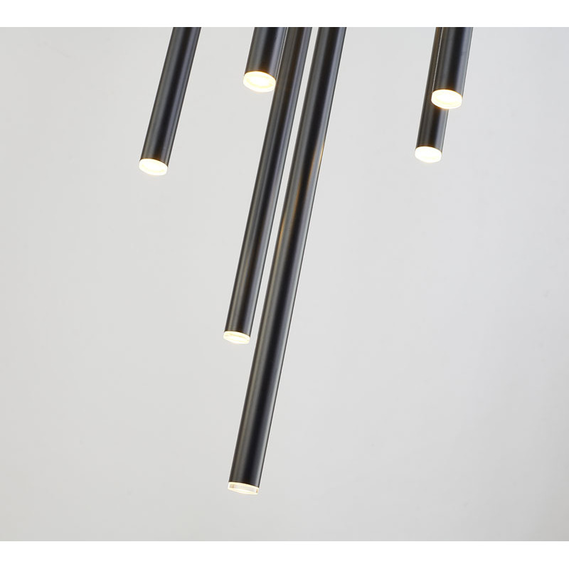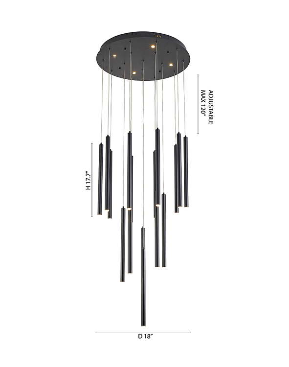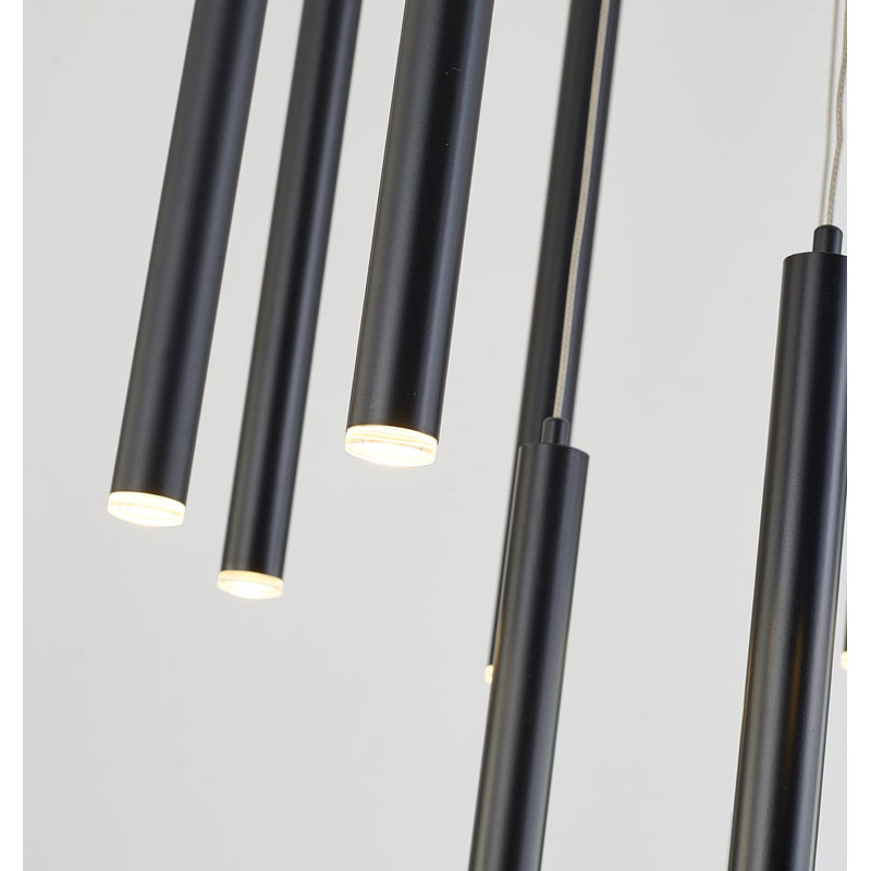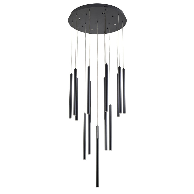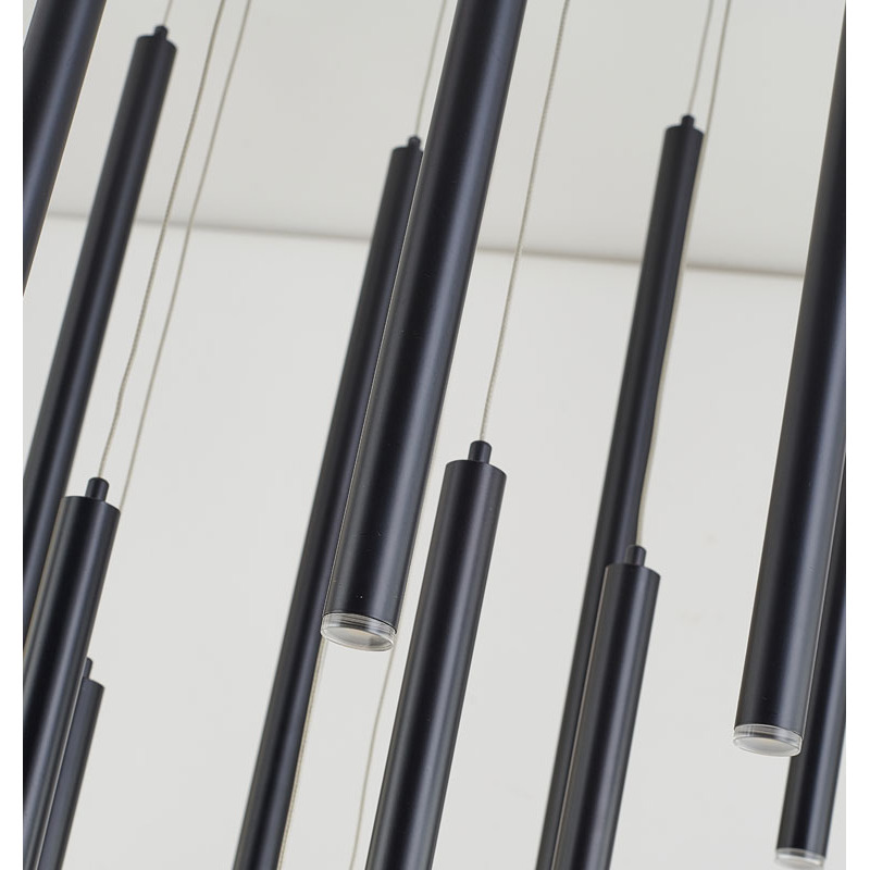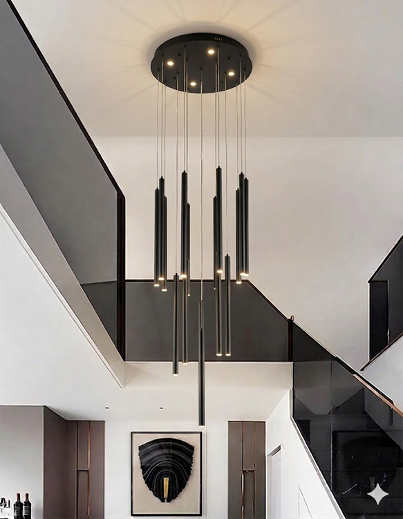A BLACK FLUSHED LED CEILING FIXTURE WITH HANGING PENDANTS