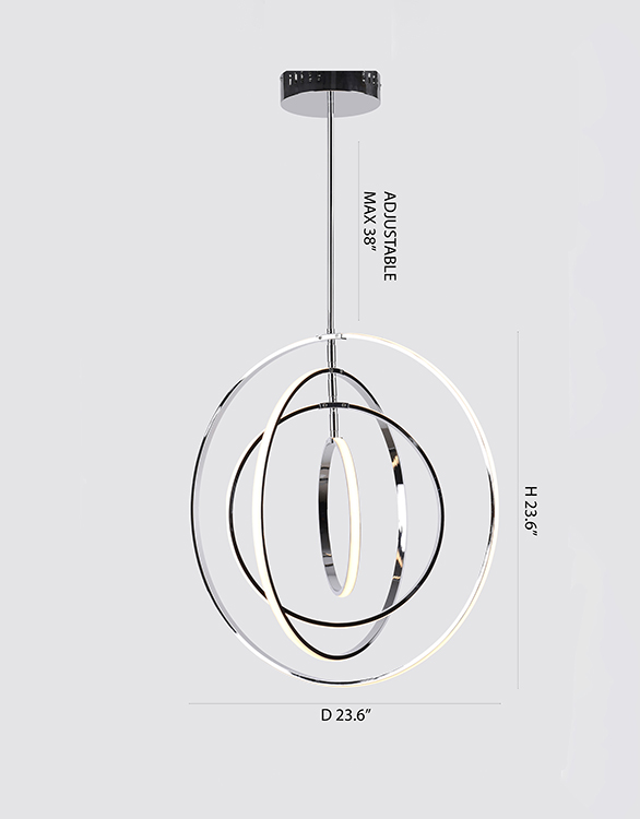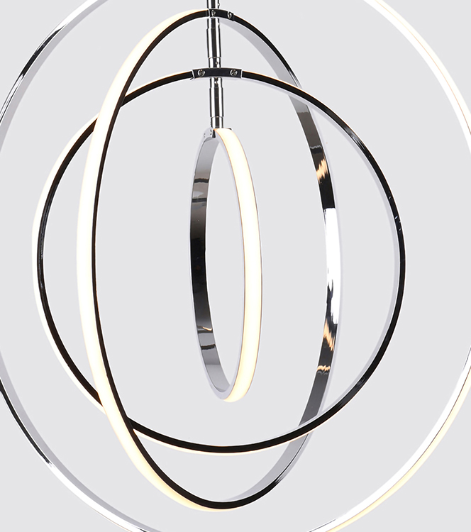 A FOUR RING LED CHANDELIER IN A CHROME FINISH