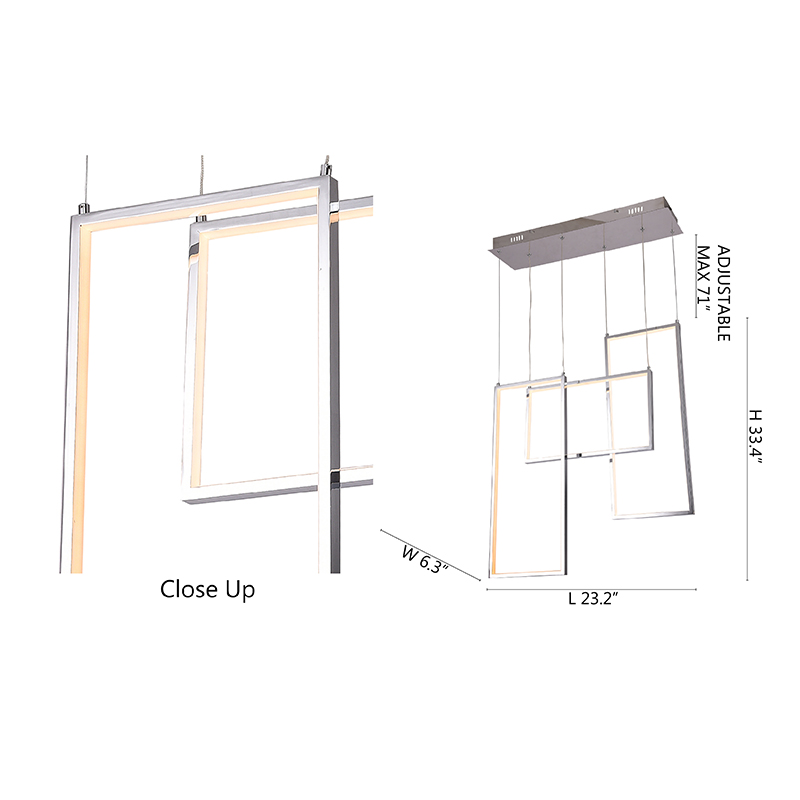 A CHROME STAINLESS STEEL FRAME BLOCK LED CEILING FIXTURE WITH A RECTANGULAR CANOPY