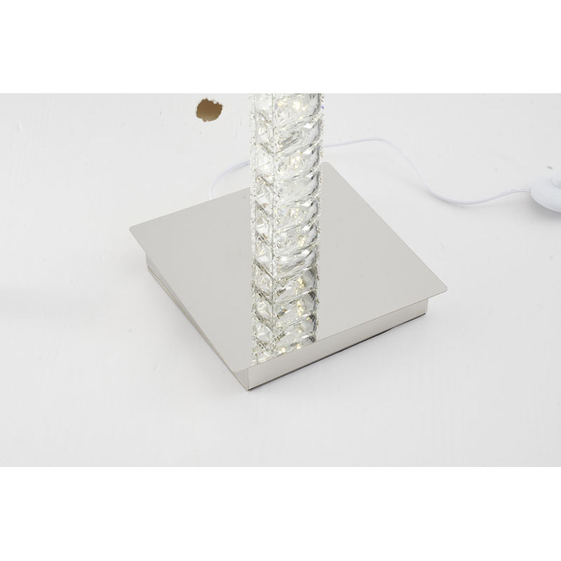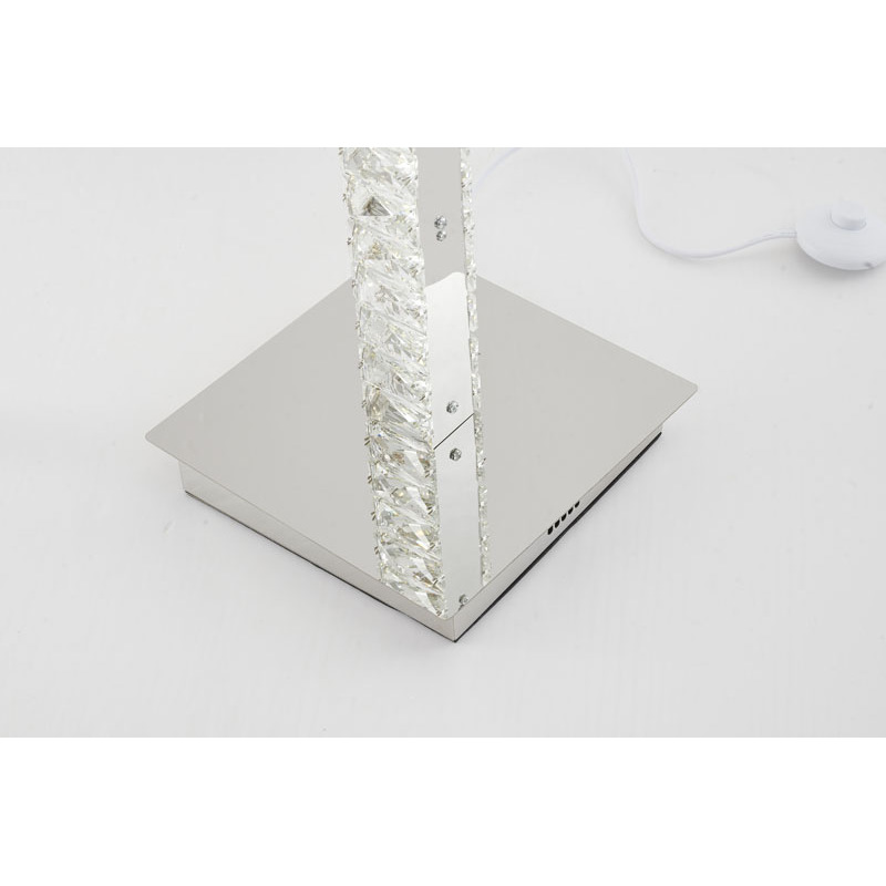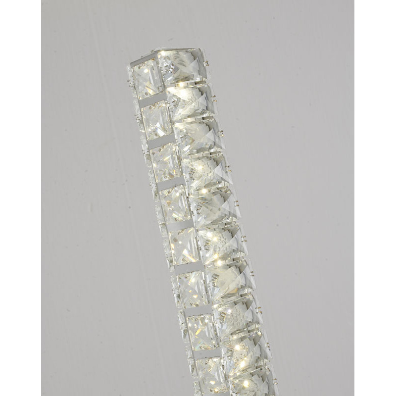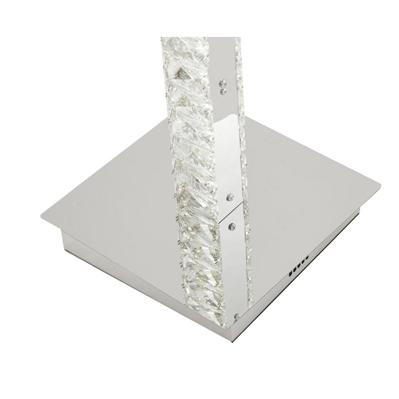 A CLEAR CRYSTAL LED STICK FLOOR LAMP WITH A STAINLESS STEEL FRAME