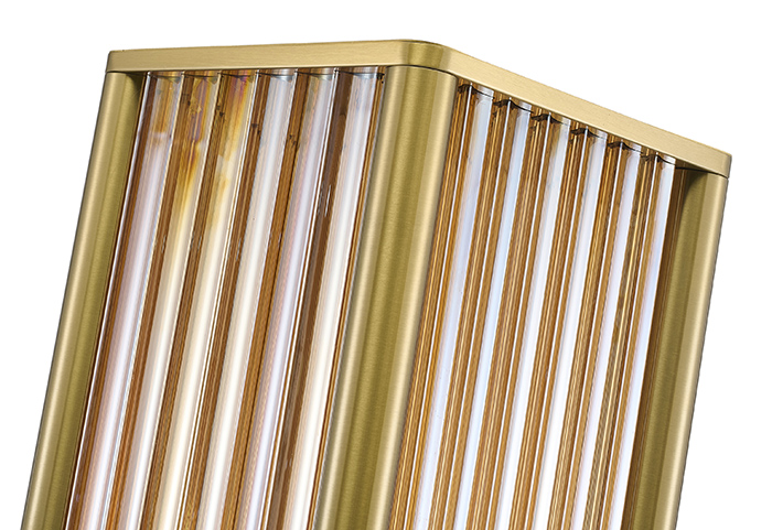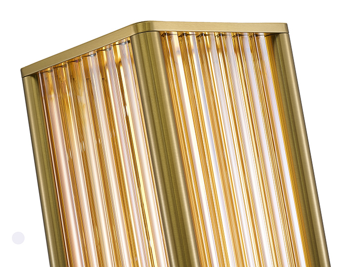 STAIN BRASS STAINLESS STEEL LED FLOOR LAMP WITH CLEAR GLASS RODS