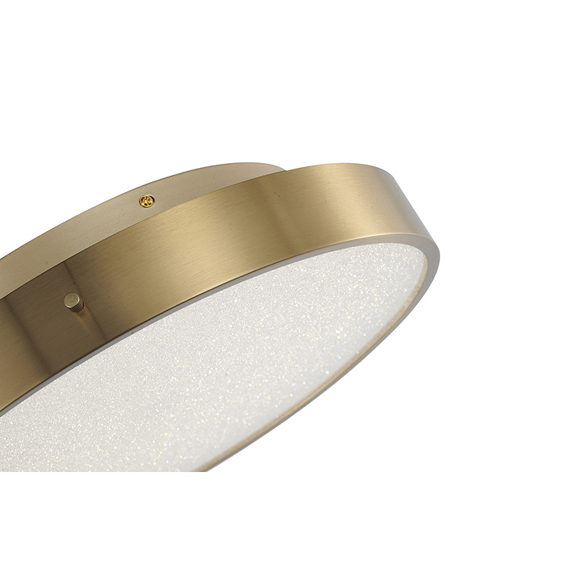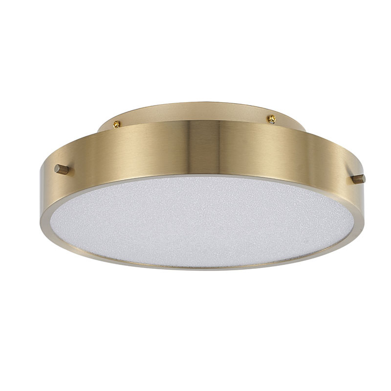 A BRASS FRAME LED FLUSH MOUNT WITH A CLEAR ACRYLIC BEADED DIFFUSER