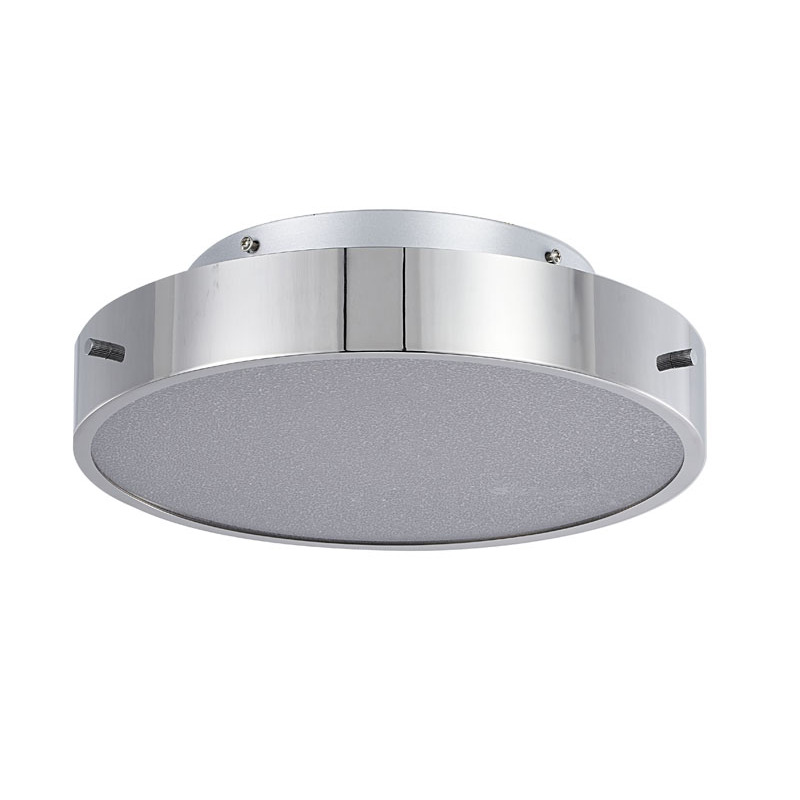 A CHROME FRAME LED FLUSH MOUNT WITH A CLEAR ACRYLIC BEADED DIFFUSER