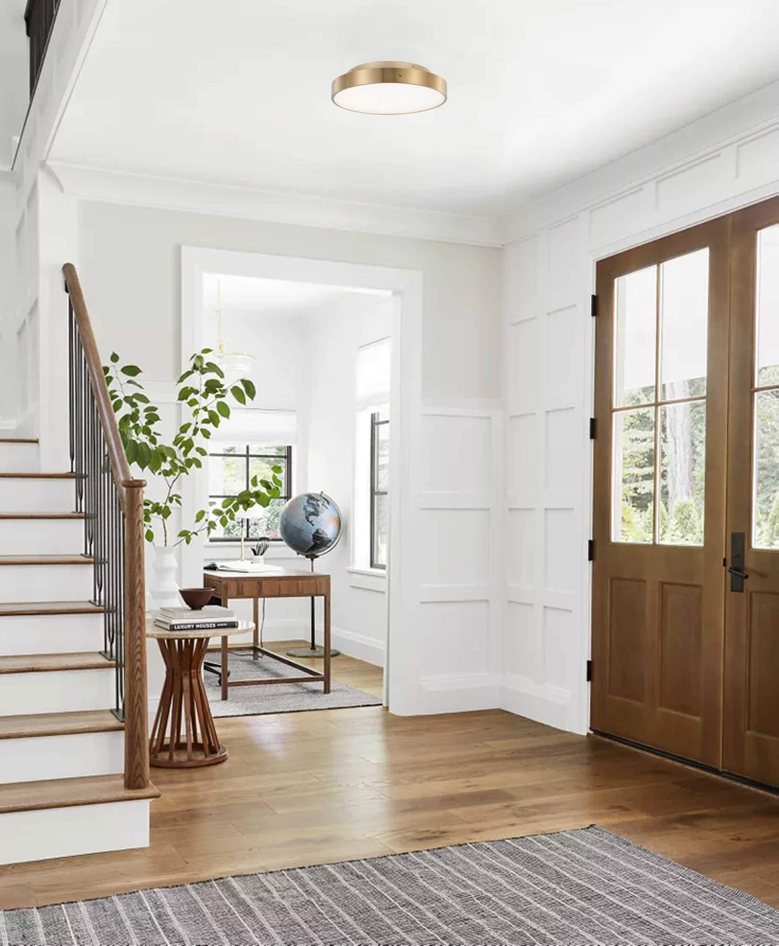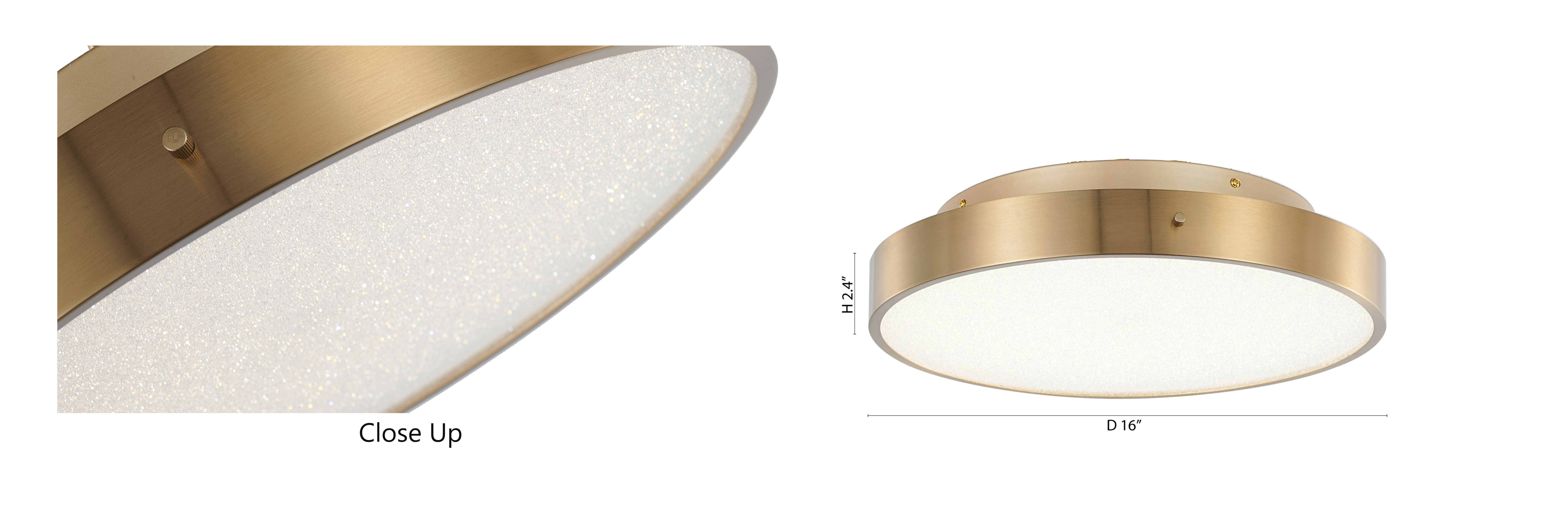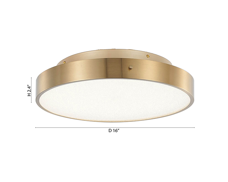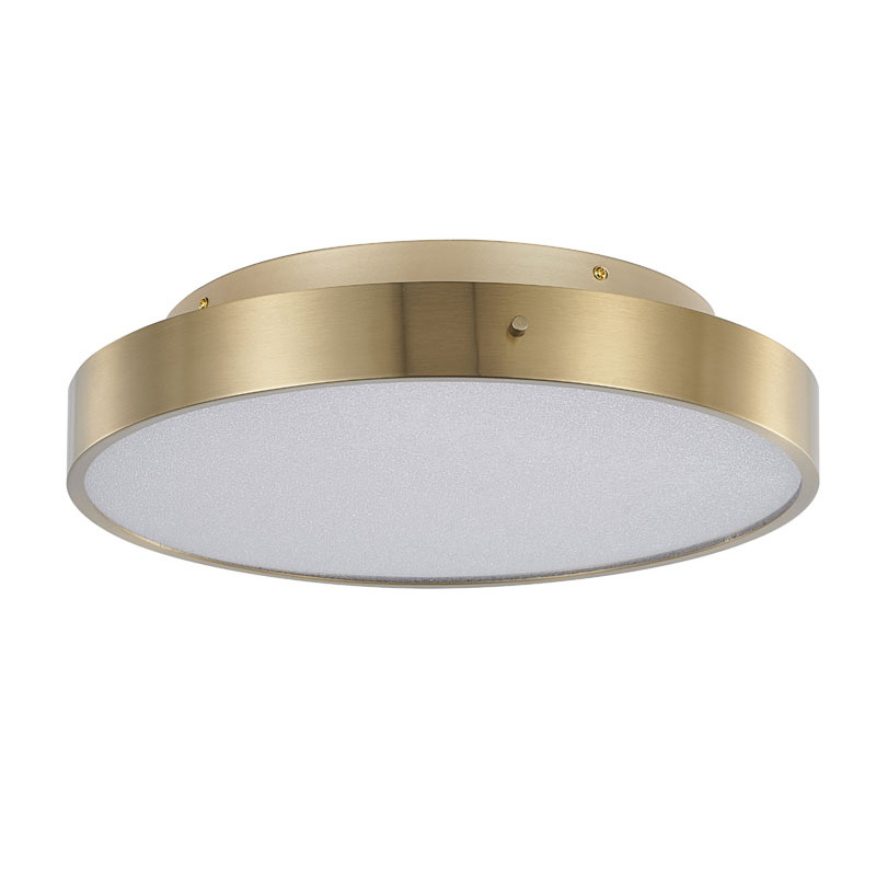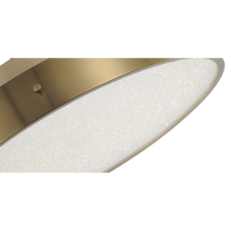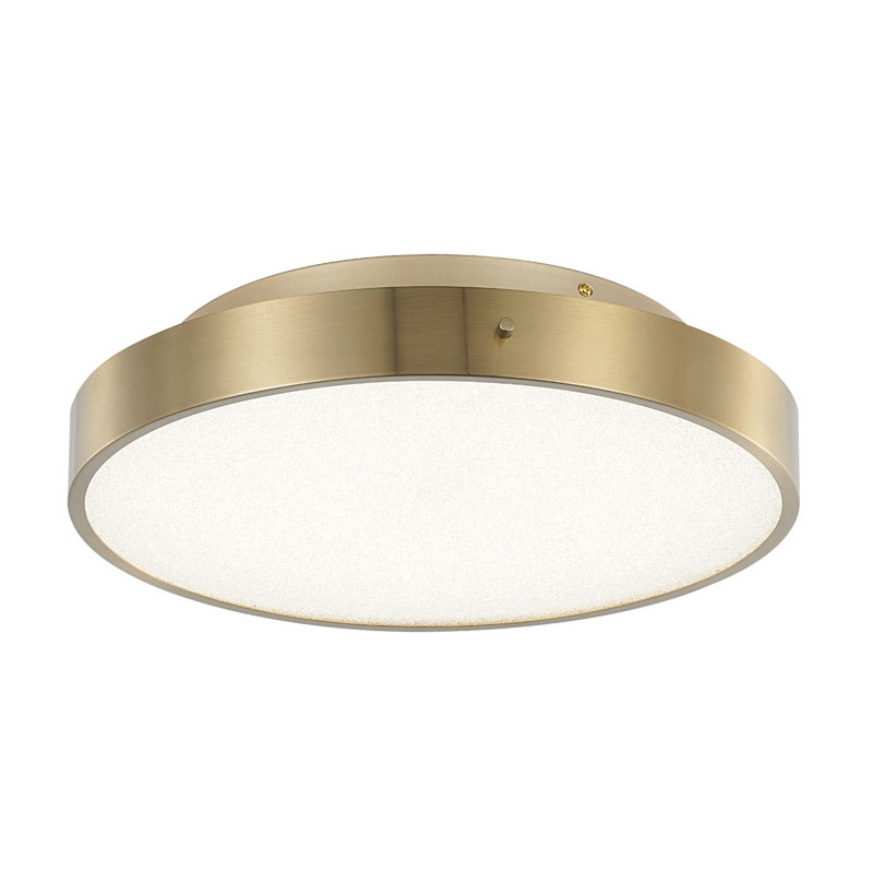 A BRASS FRAME LED FLUSH MOUNT WITH A CLEAR ACRYLIC BEADED DIFFUSER