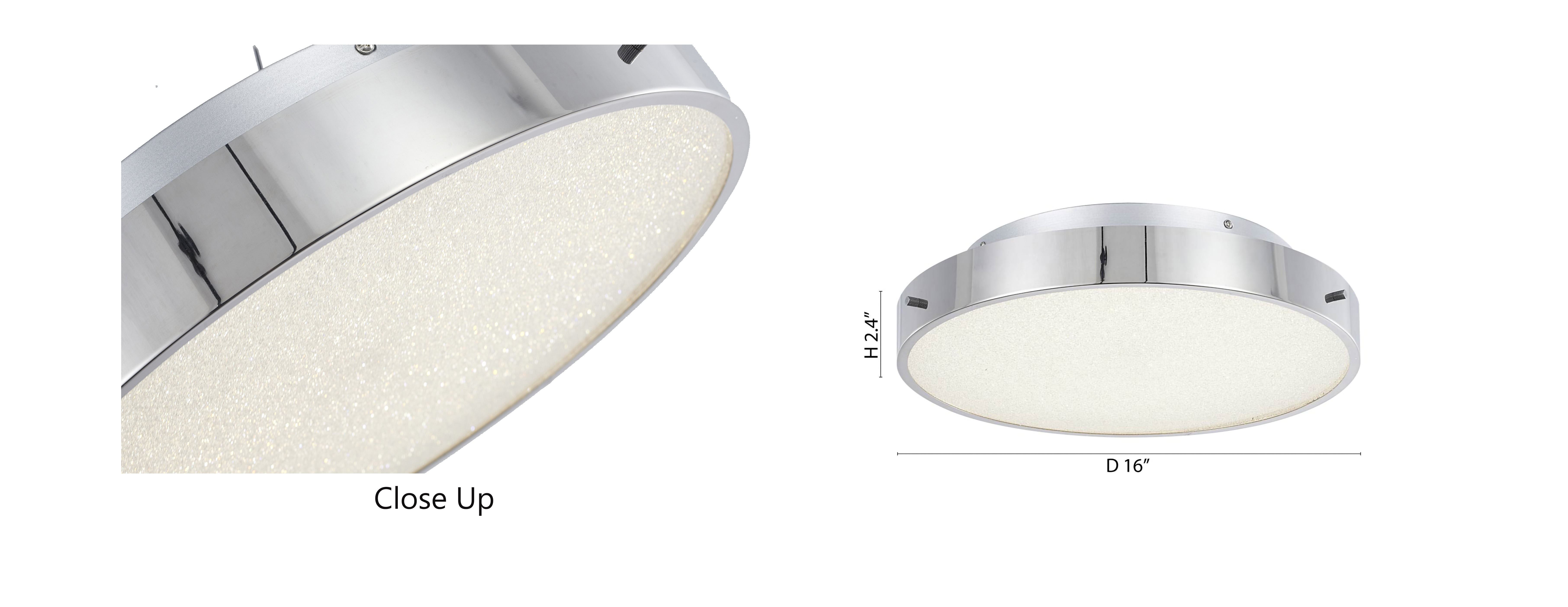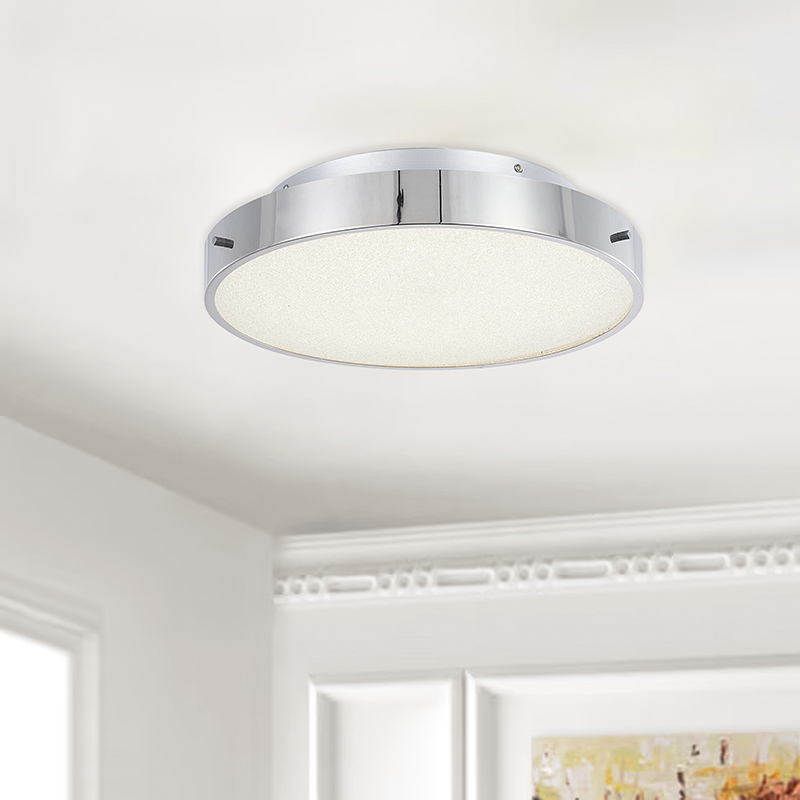 A CHROME FRAME LED FLUSH MOUNT WITH A CLEAR ACRYLIC BEADED DIFFUSER