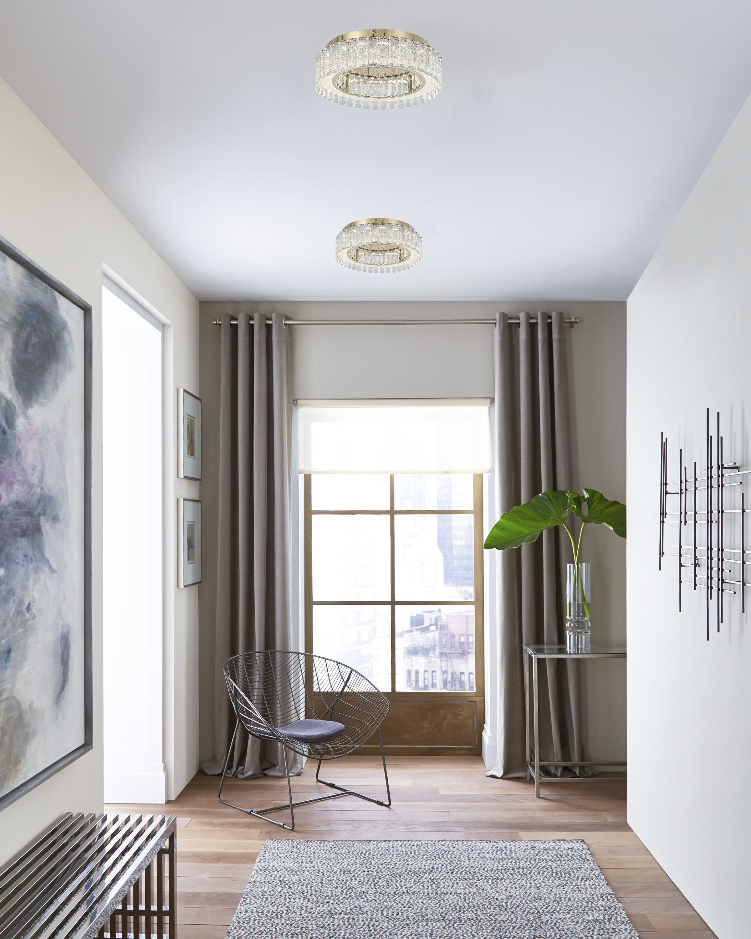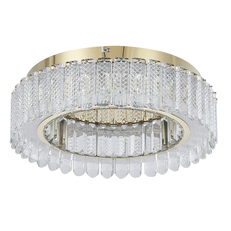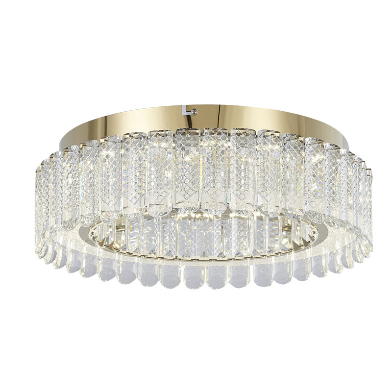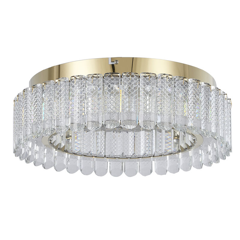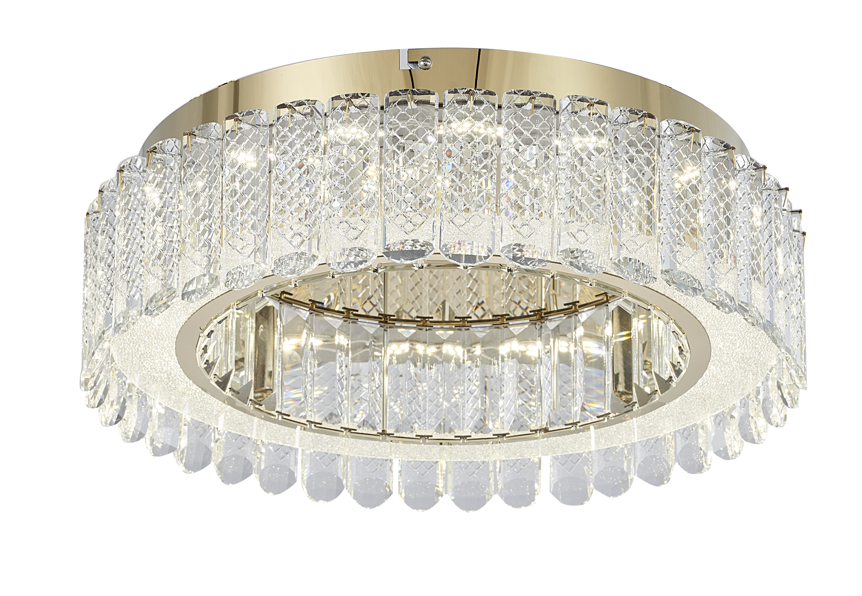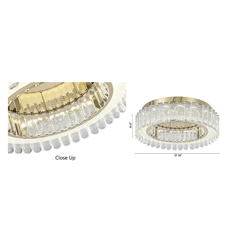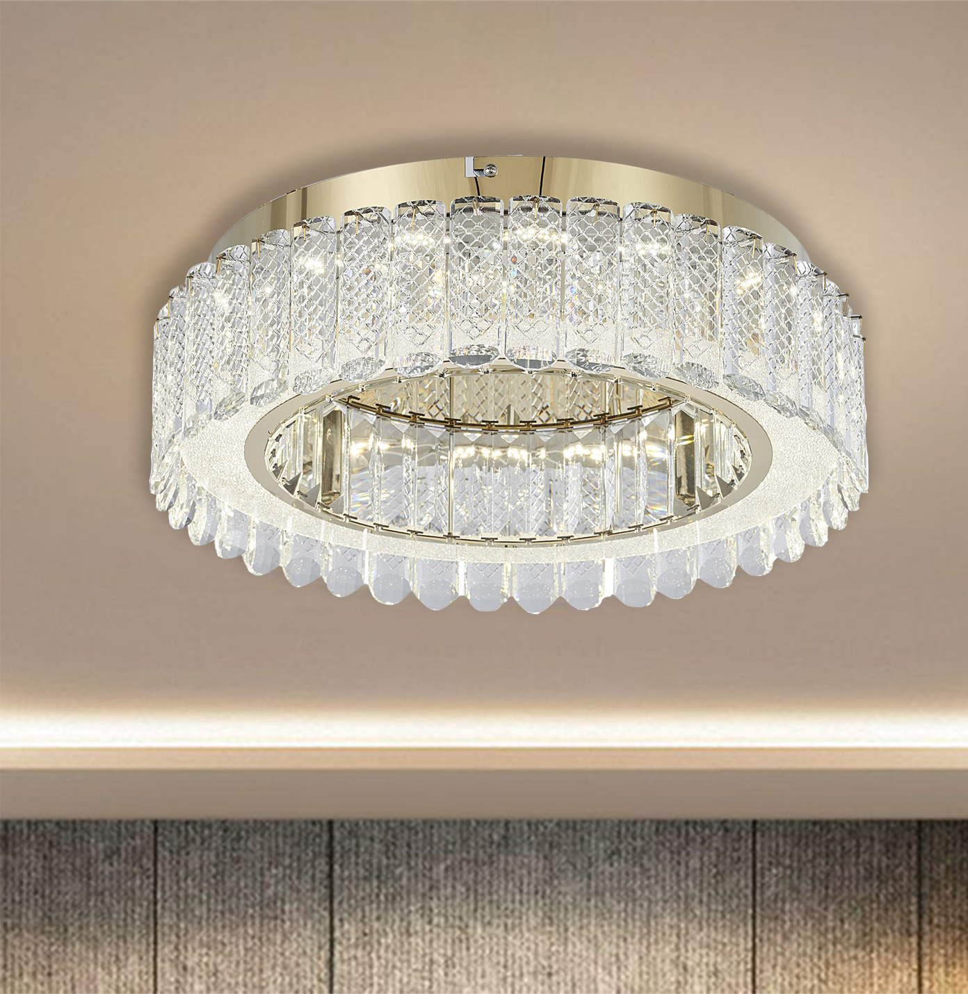 A GOLD STAINLESS STEEL FLUSH MOUNT WITH CLEAR CRYSTALS