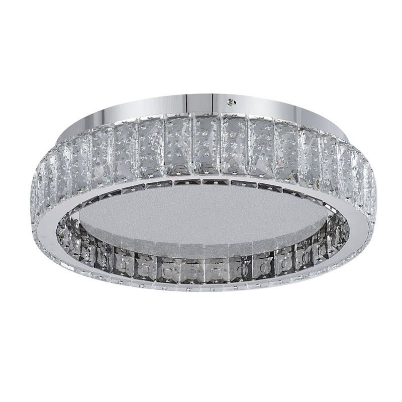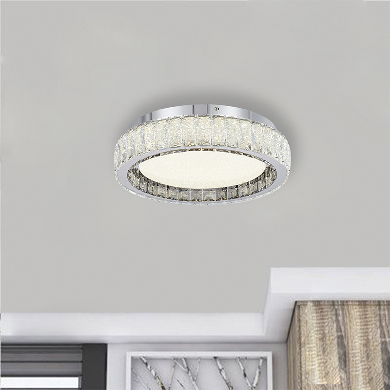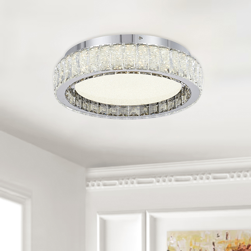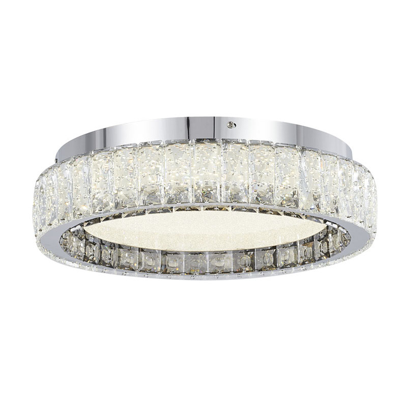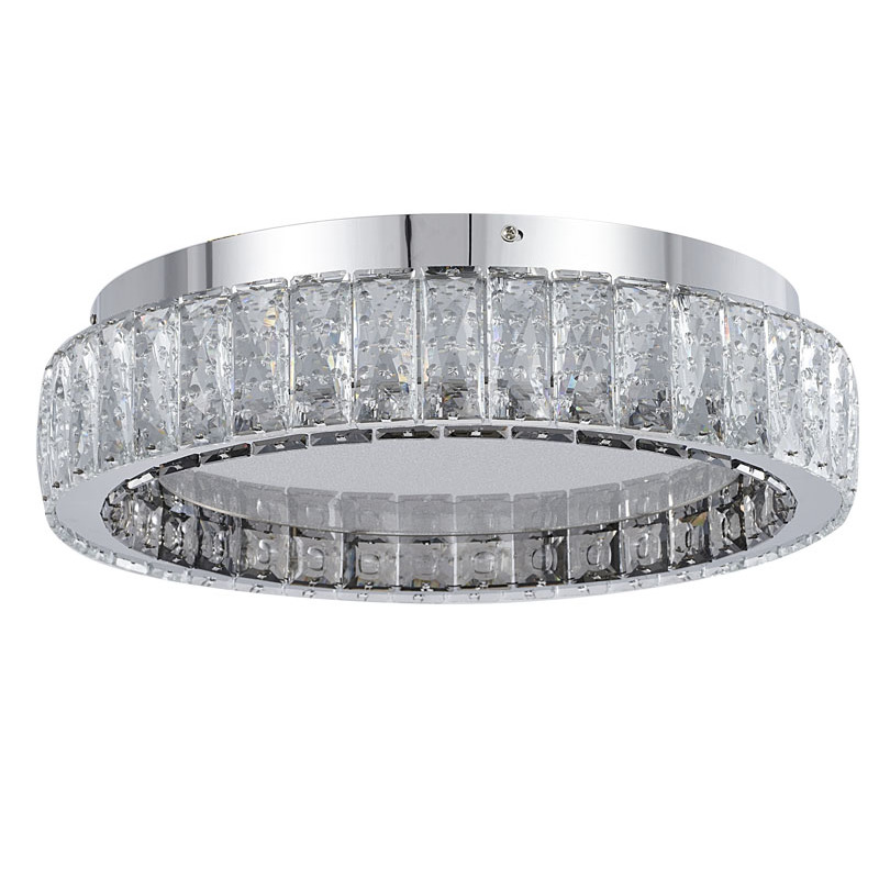 A CHROME STAINLESS STEEL FLUSH MOUNT WITH CLEAR AND SMOKE CRYSTALS