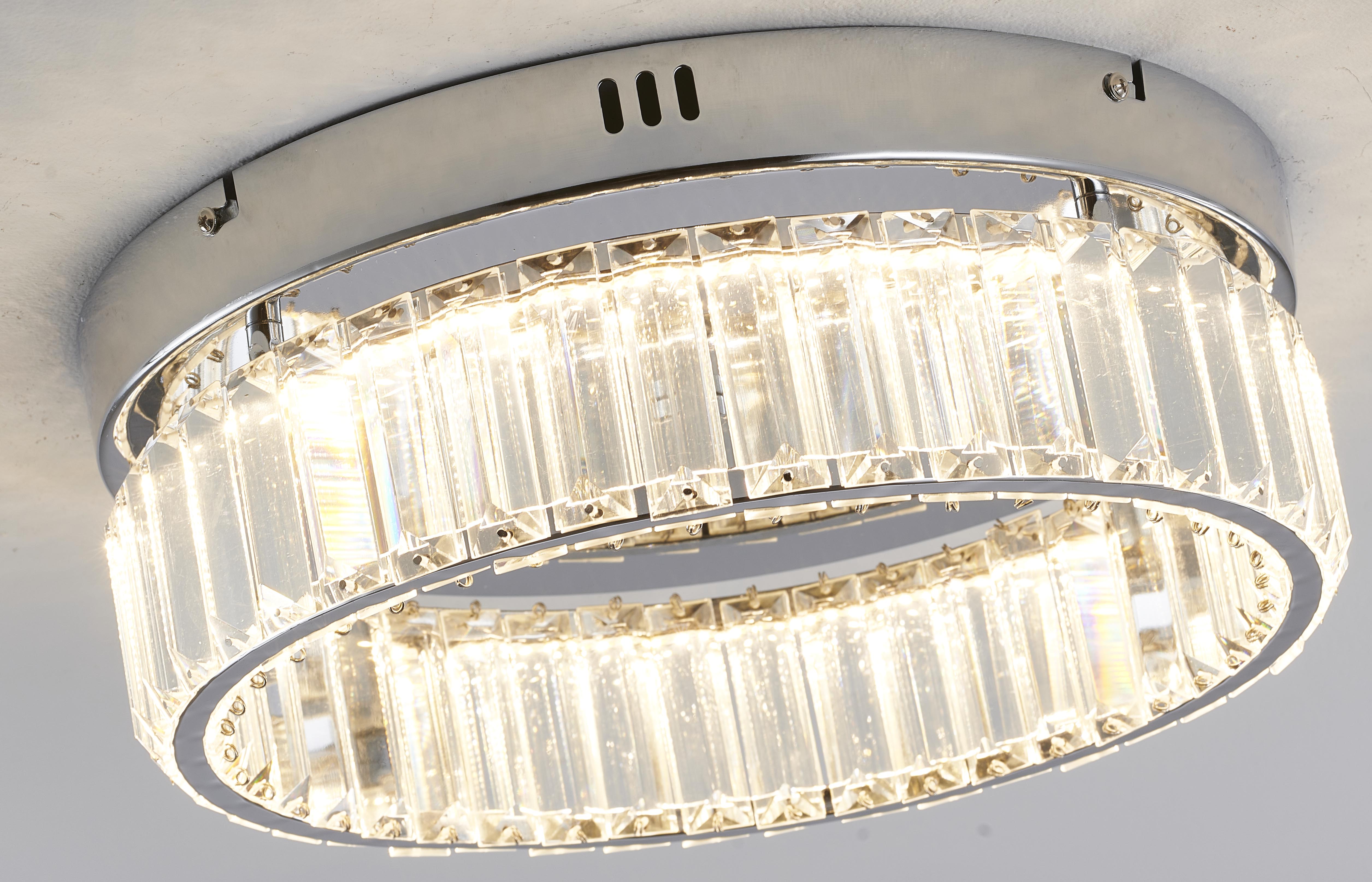A ROUND CHROME FRAME FLUSH MOUNT WITH CLEAR CRYSTALS