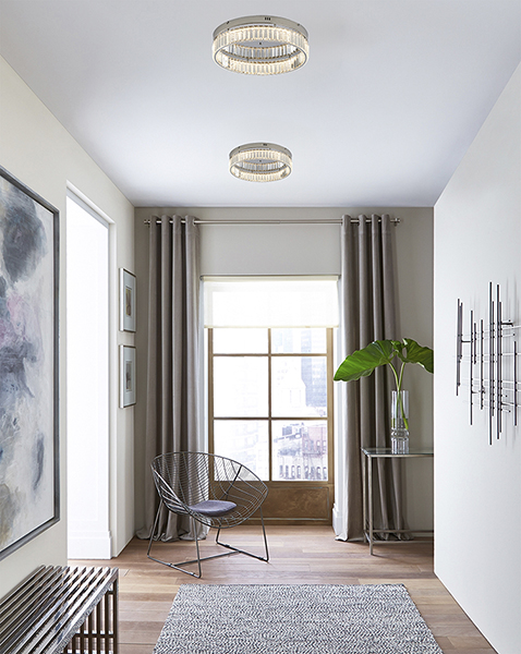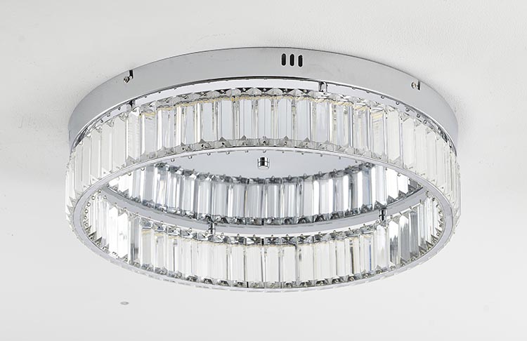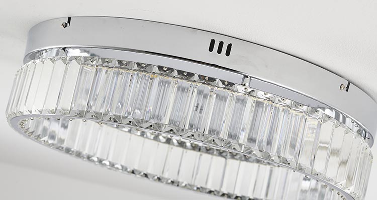 A ROUND CHROME FRAME FLUSH MOUNT WITH CLEAR CRYSTALS