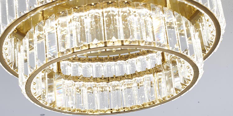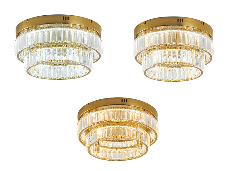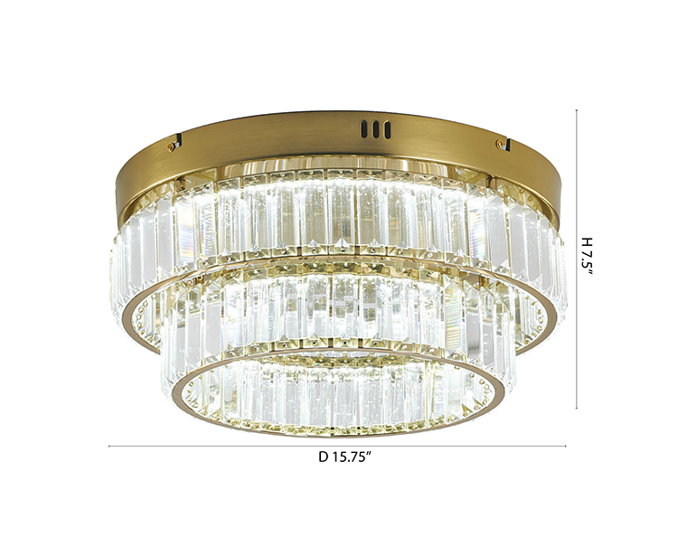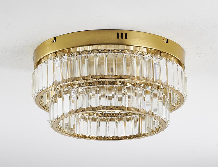 A TWO TIER BRASS FRAME FLUSH MOUNT WITH CLEAR CRYSTALS