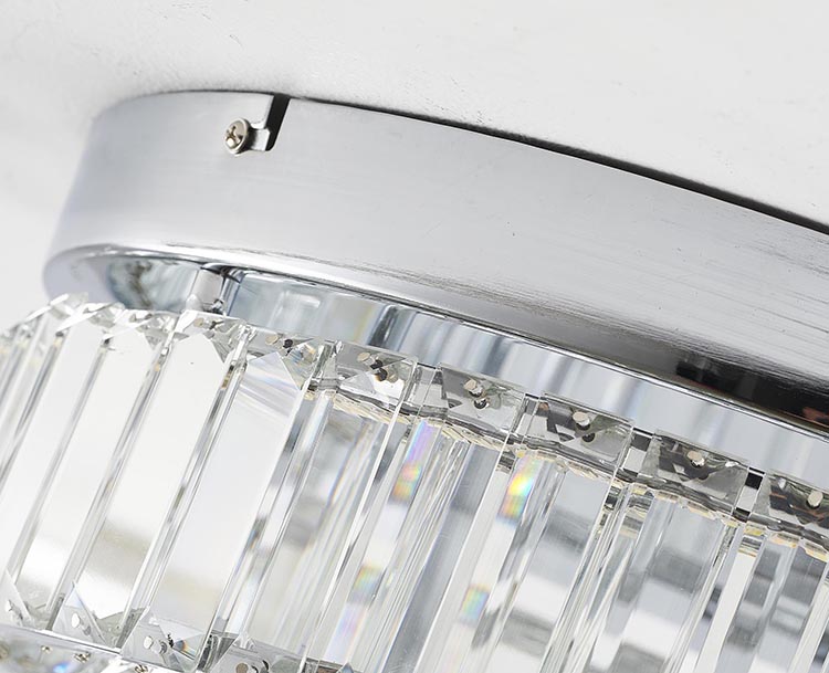 A TWO TIER BRASS FRAME FLUSH MOUNT WITH CLEAR CRYSTALS