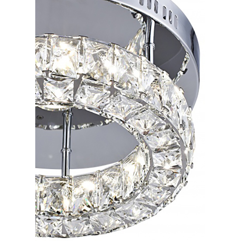 TRIPLE SIDED CLEAR CRYSTAL ROUND FLUSH MOUNT WITH A CHROME FRAME