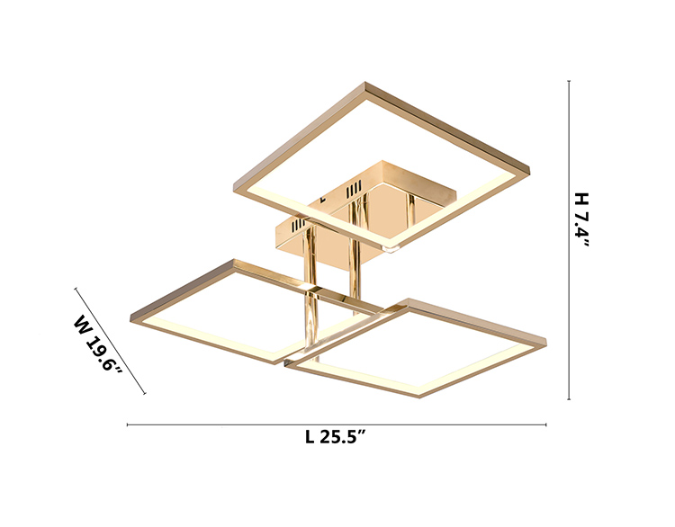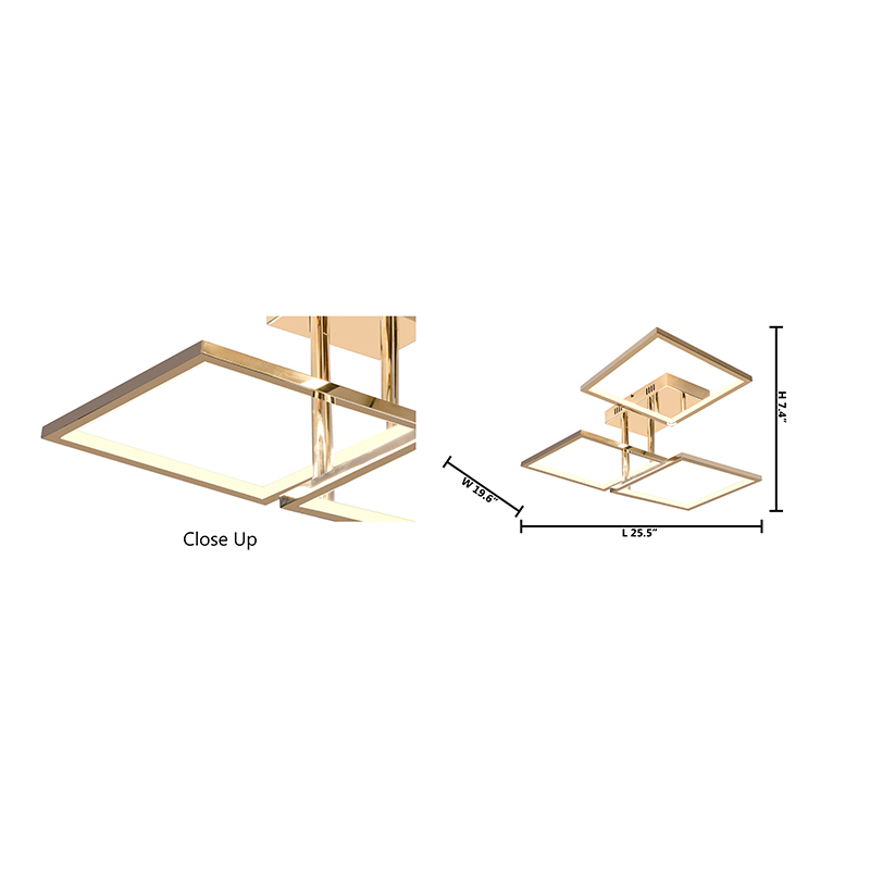 A GOLD STAINLESS STEEL SQUARE BLOCK FLUSH MOUNT WITH AN ACRYLIC DIFFUSER