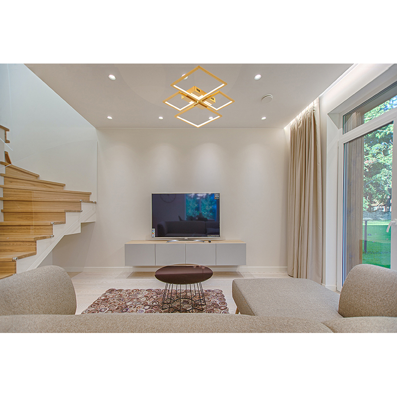 A GOLD STAINLESS STEEL FLUSH MOUNT WITH AN ACRYLIC DIFFUSER