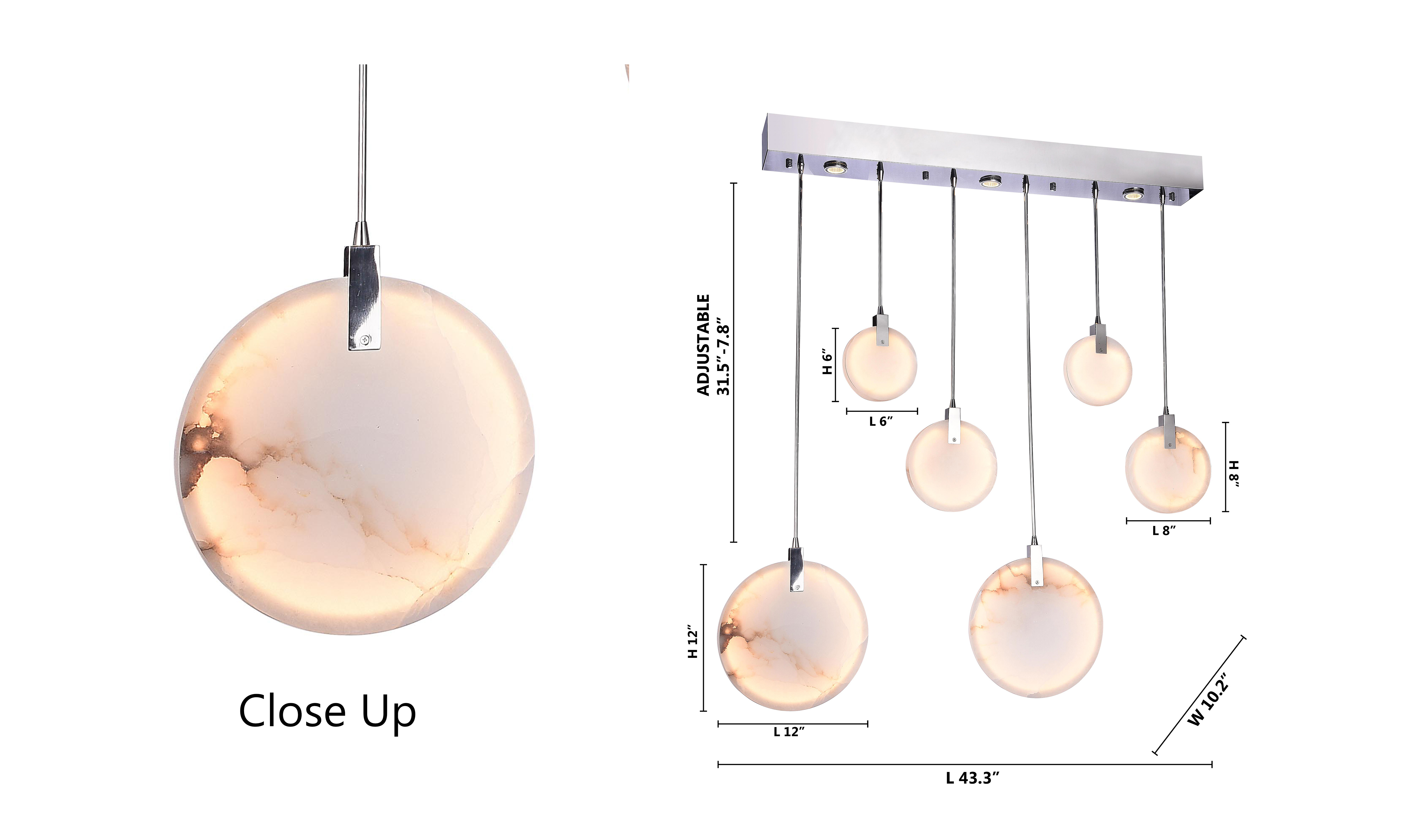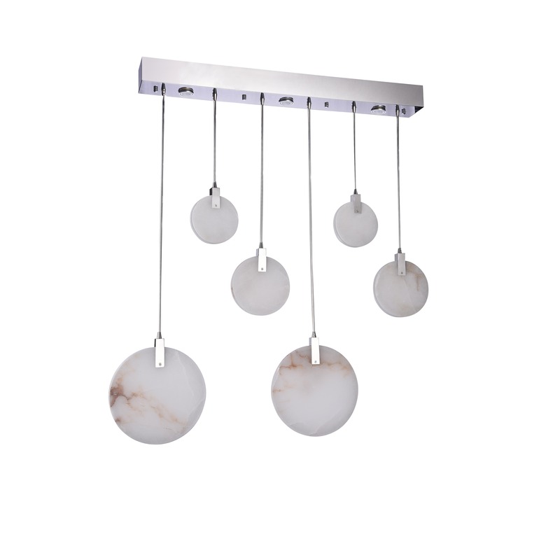 A CHROME STAINLESS STEEL RECTANGULAR FRAME LED CHANDELIER WITH SPANISH ALABASTER PENDANTS