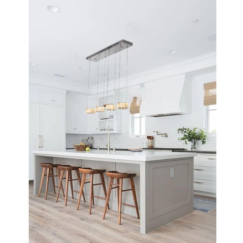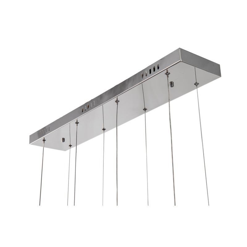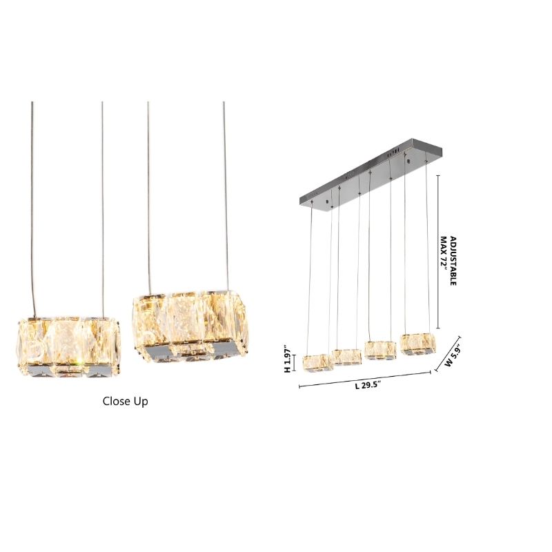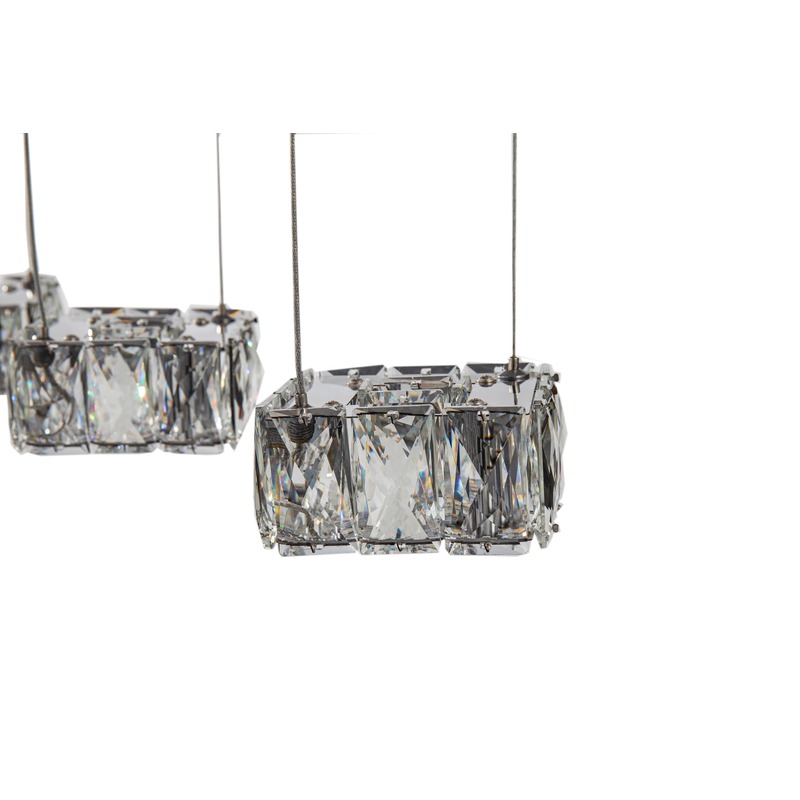 A CHROME FRAME ISLAND LED LIGHT WITH CLEAR CRYSTAL PENDANTS