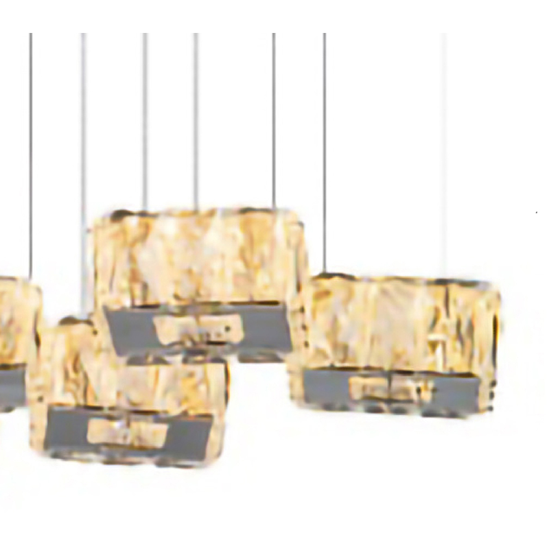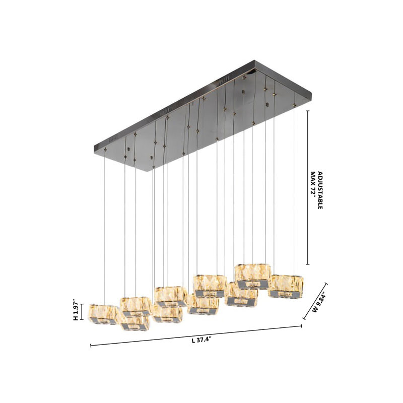 A CHROME METAL FRAME LED ISLAND LIGHT WITH CLEAR CRYSTAL HANGING PENDANTS