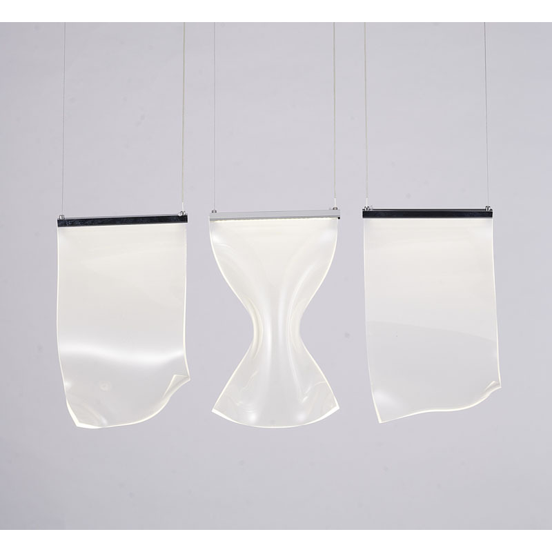 A THREE LIGHT ACRYLIC CRUMBLED SHEET PENDANT ISLAND LIGHT WITH GOLD HARDWARE