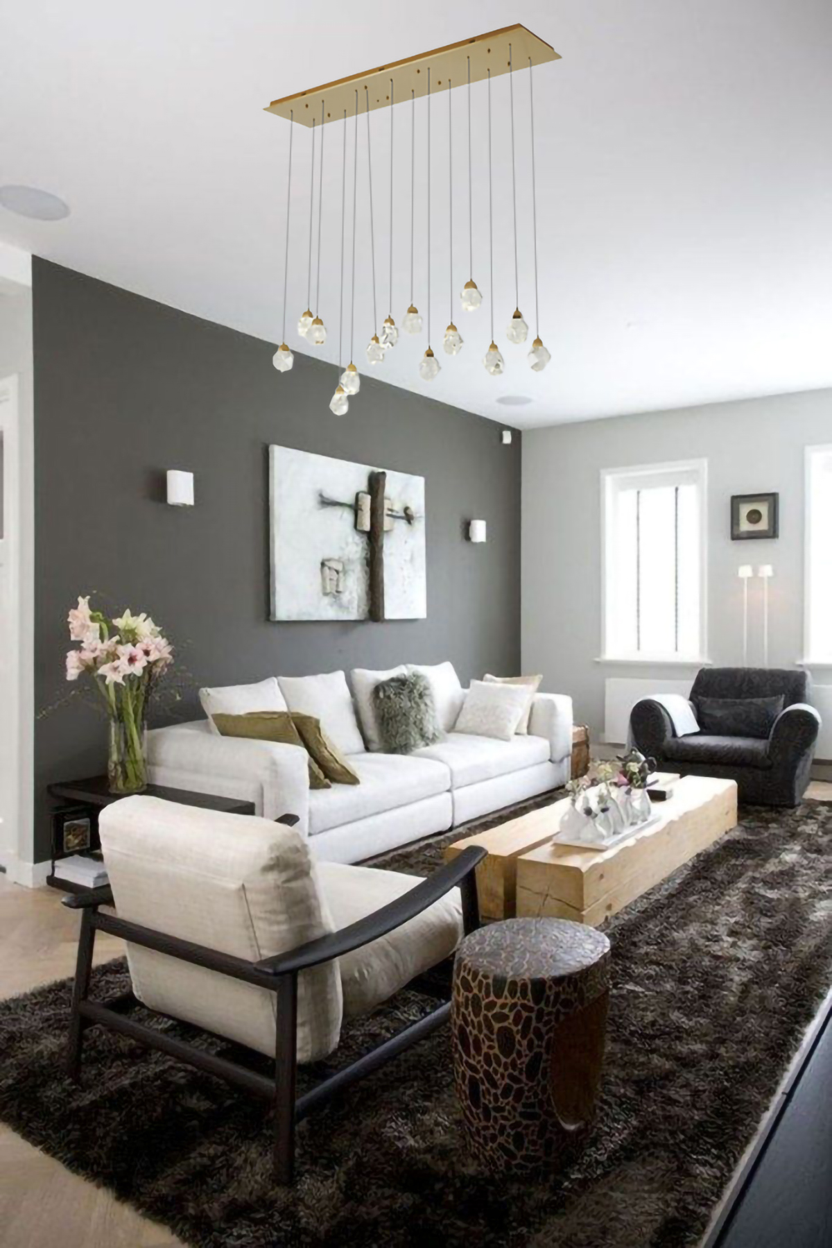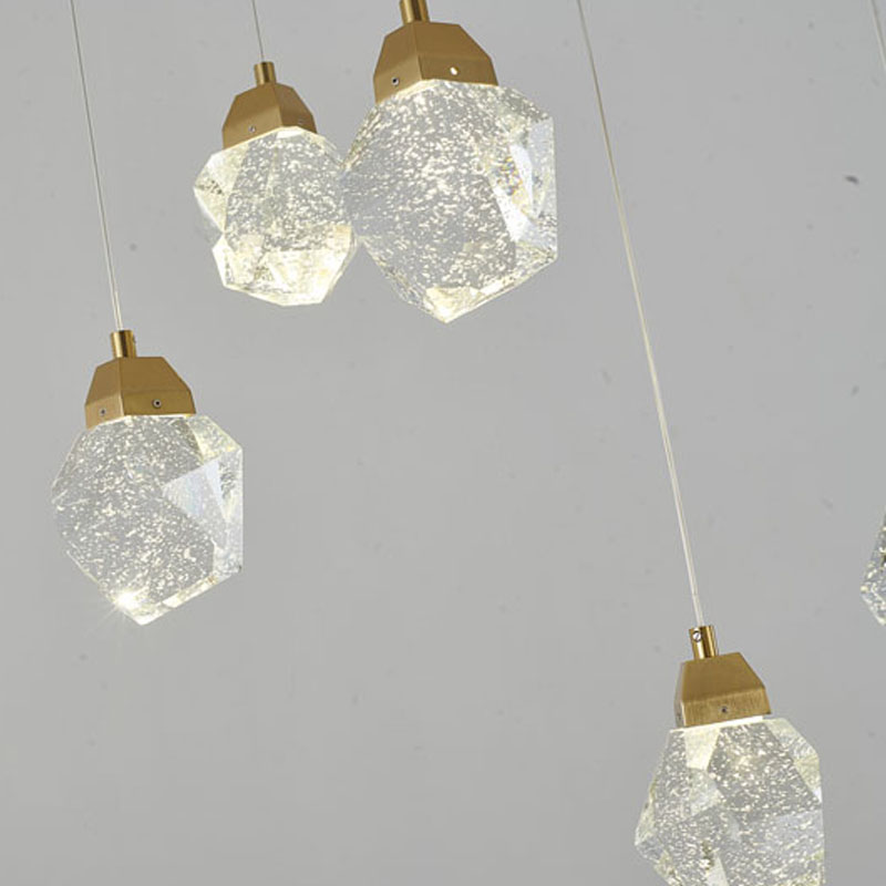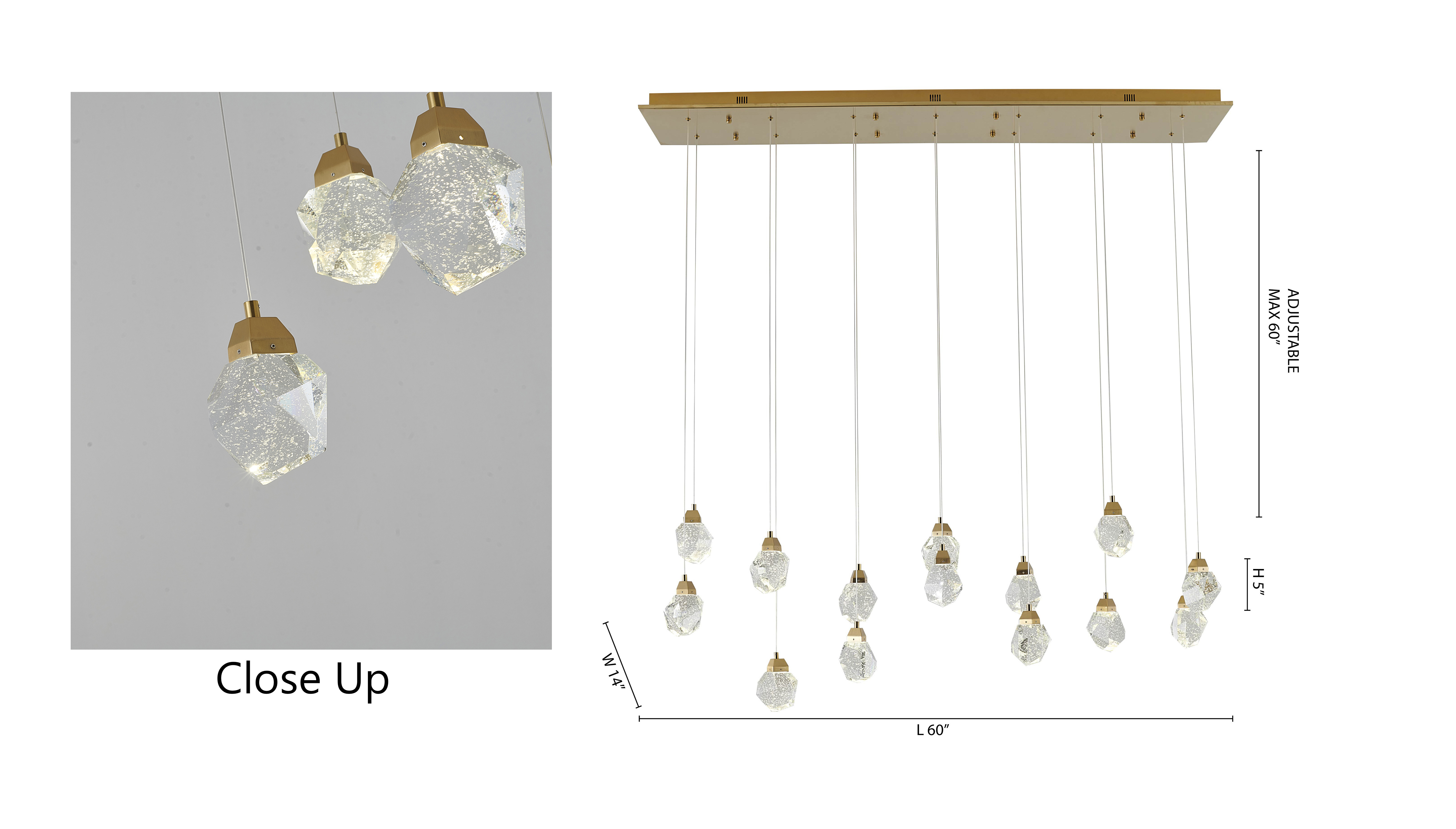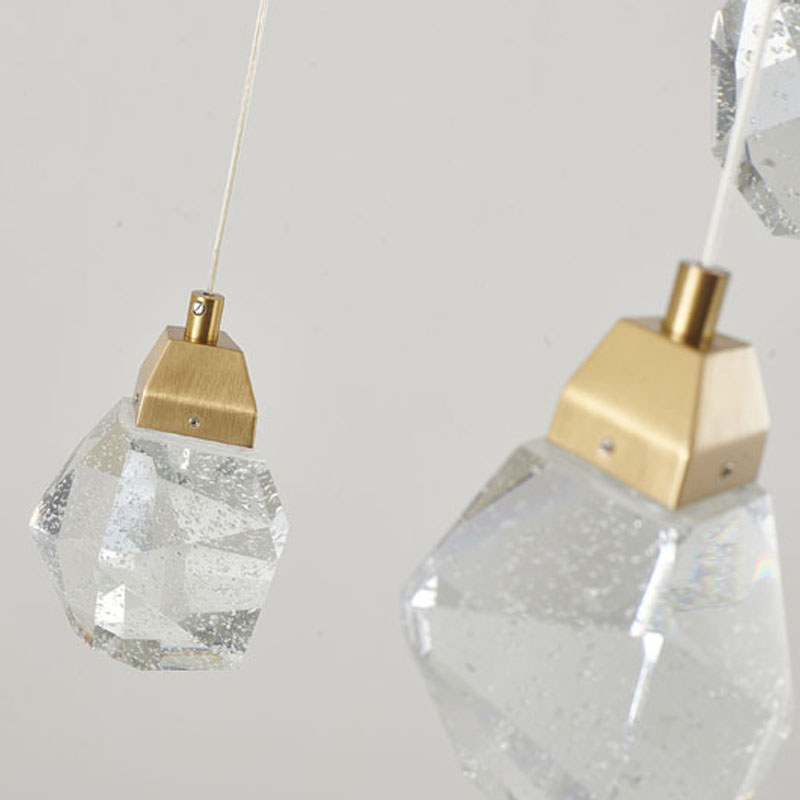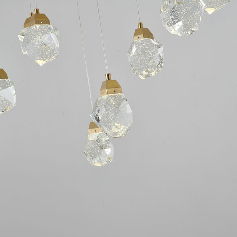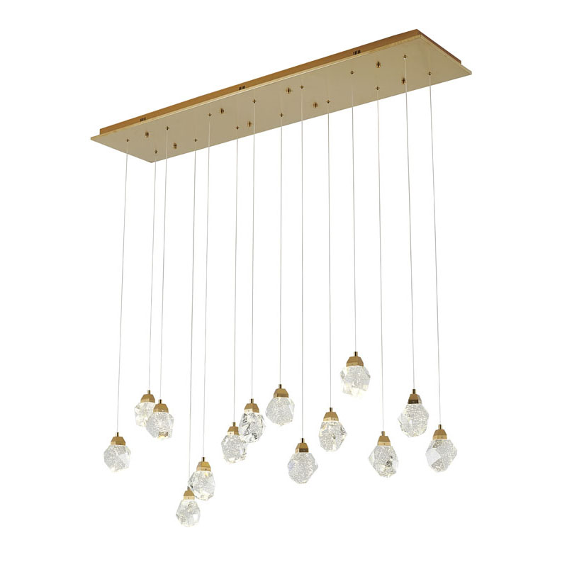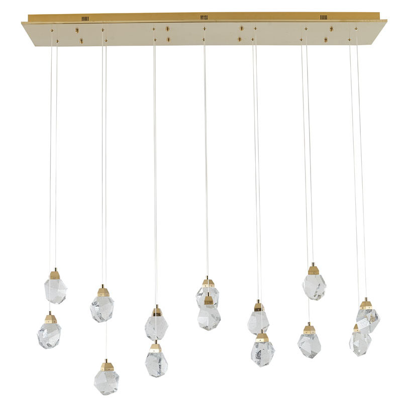A GOLD FRAME ISLAND LIGHT WITH HANGING CLEAR BUBBLE CRYSTAL PENDANTS