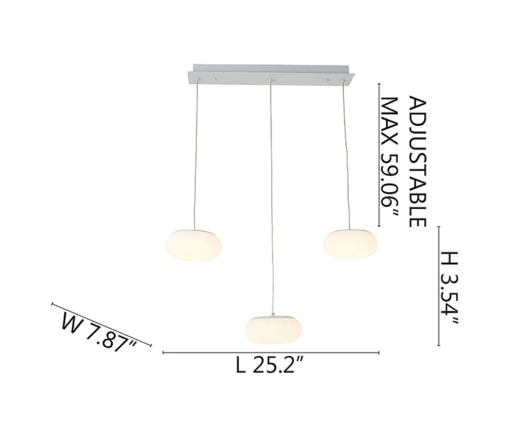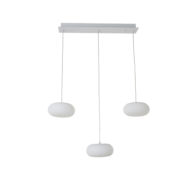 A RECTANGULAR FRAME WITH THREE HANGING PC FRAME PENDANTS & WHITE STEEL HARDWARE