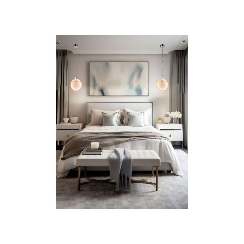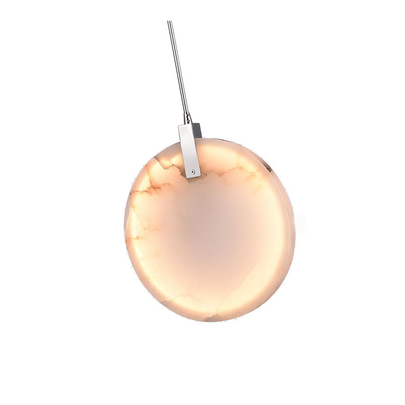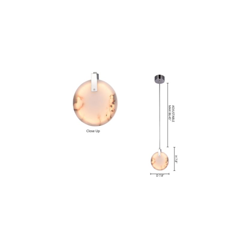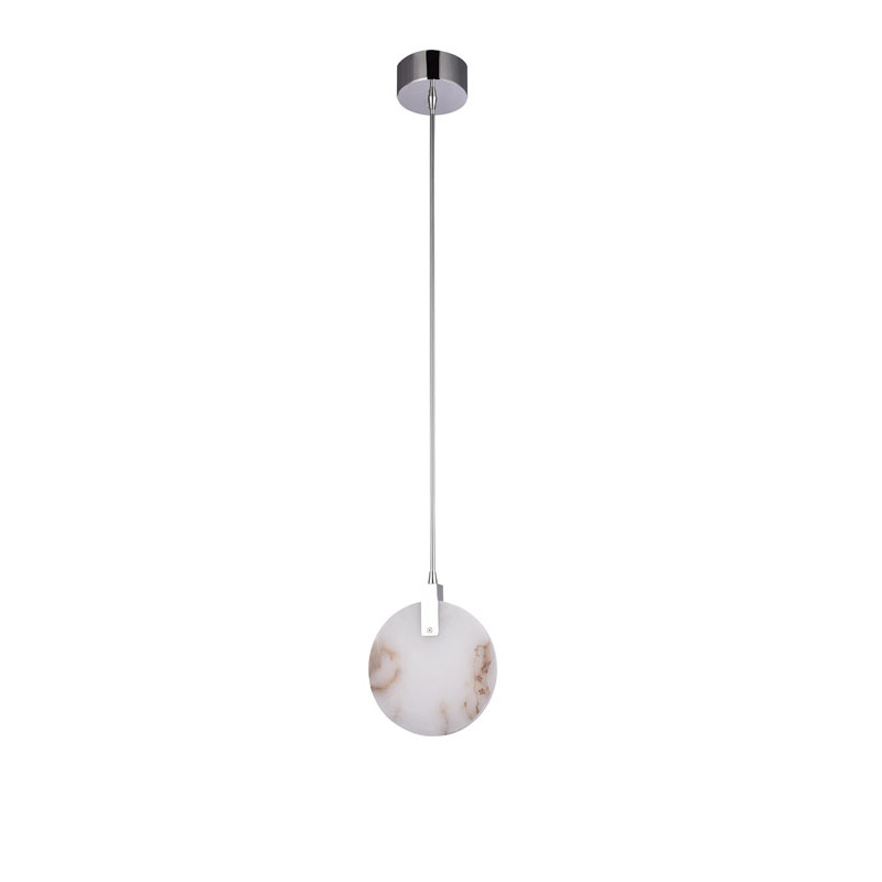 A CHROME STAINLESS STEEL LED SINGLE PENDANT LIGHT WITH SPANISH ALABASTER