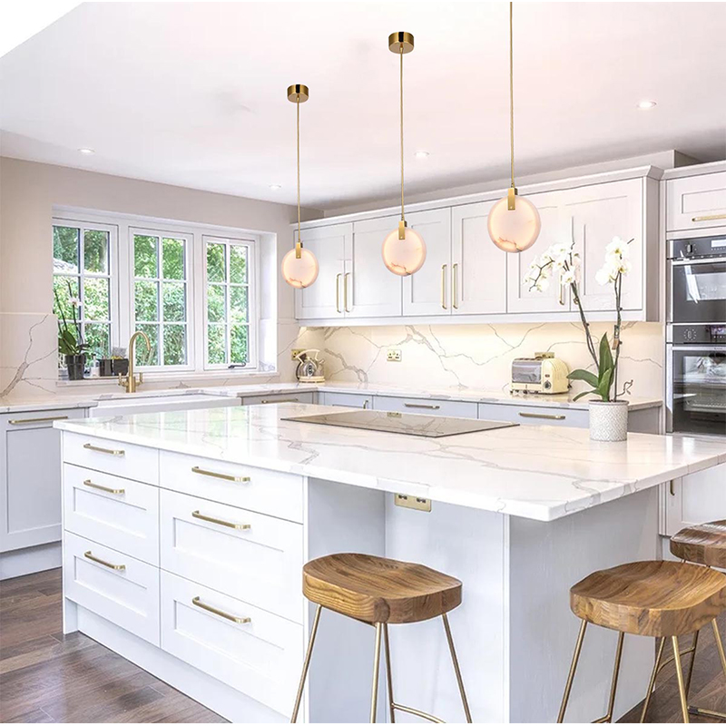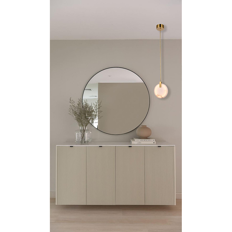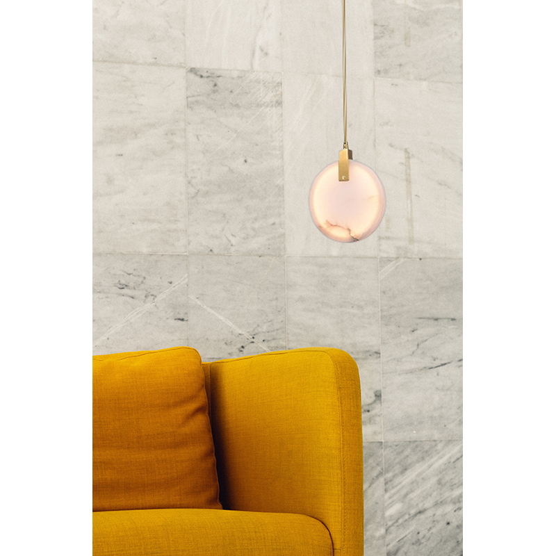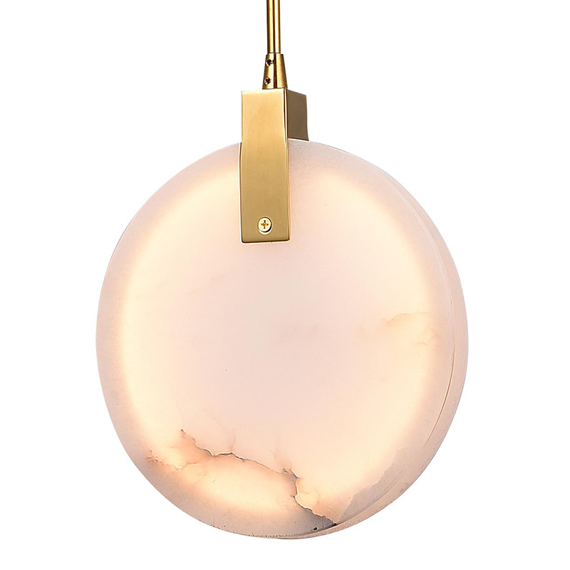 A GOLD STAINLESS STEEL LED SINGLE PENDANT LIGHT WITH SPANISH ALABASTER