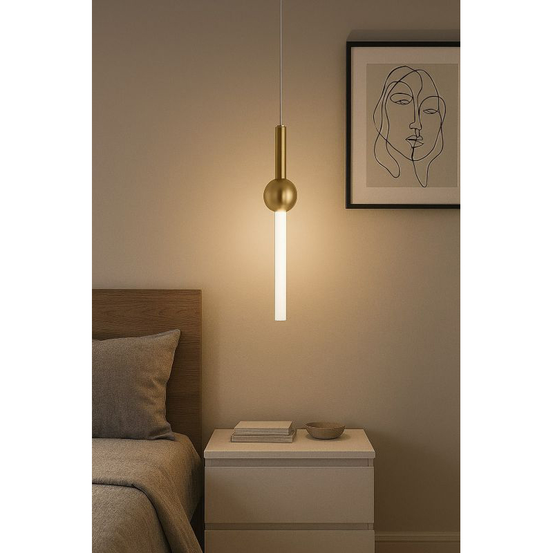 A GOLD SINGLE PENDANT LIGHT WITH A WHITE ACRYLIC SHADE
