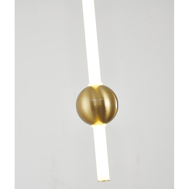 A GOLD FRAME LED PENDANT LIGHT WITH A WHITE GLASS SHADE