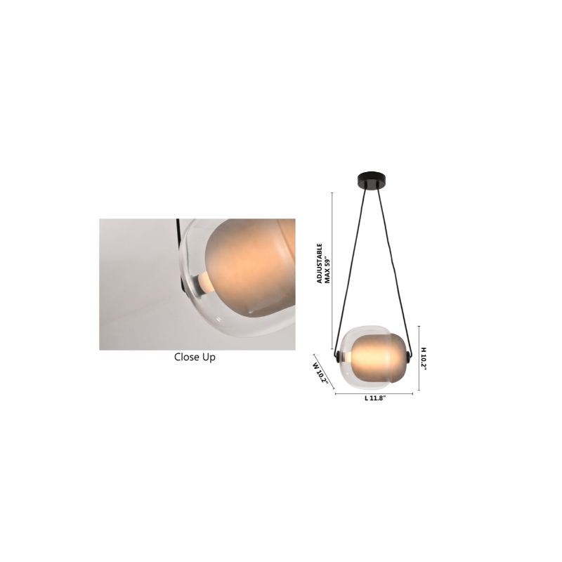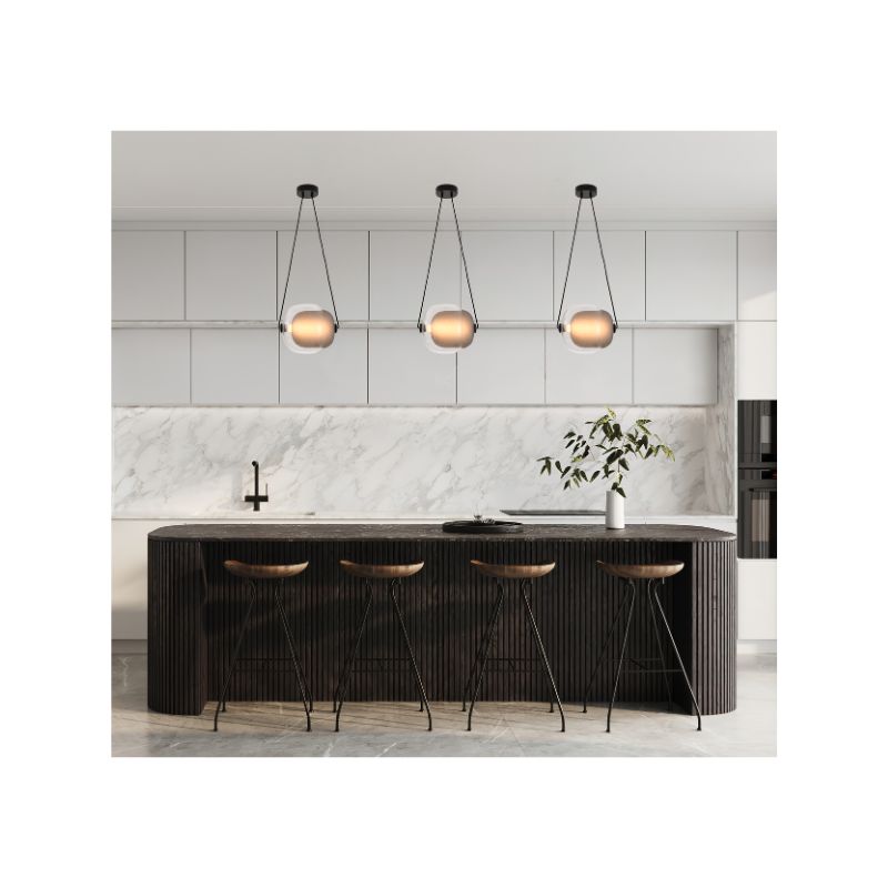 A SMOKE & CLEAR GLASS PENDANT LIGHT WITH BLACK HARDWARE