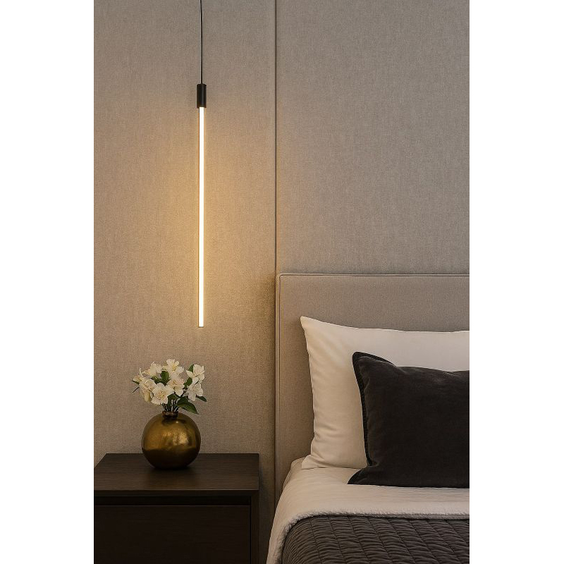 A BLACK LED STICK PENDANT LIGHT WITH A WHITE ACRYLIC DIFFUSER