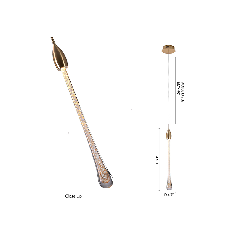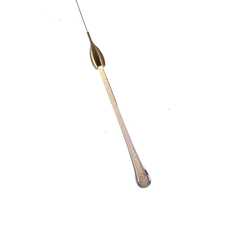 A GOLD DUSTED CLEAR GLASS LED PENDANT WITH GOLD HARDWARE