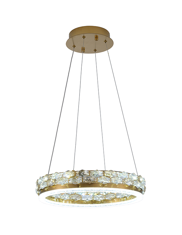 BRASS STAINLESS STEEL LED PENDANT WITH CRYSTAL ACCENTS