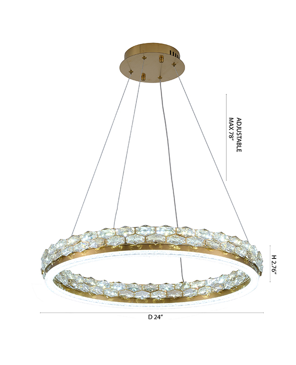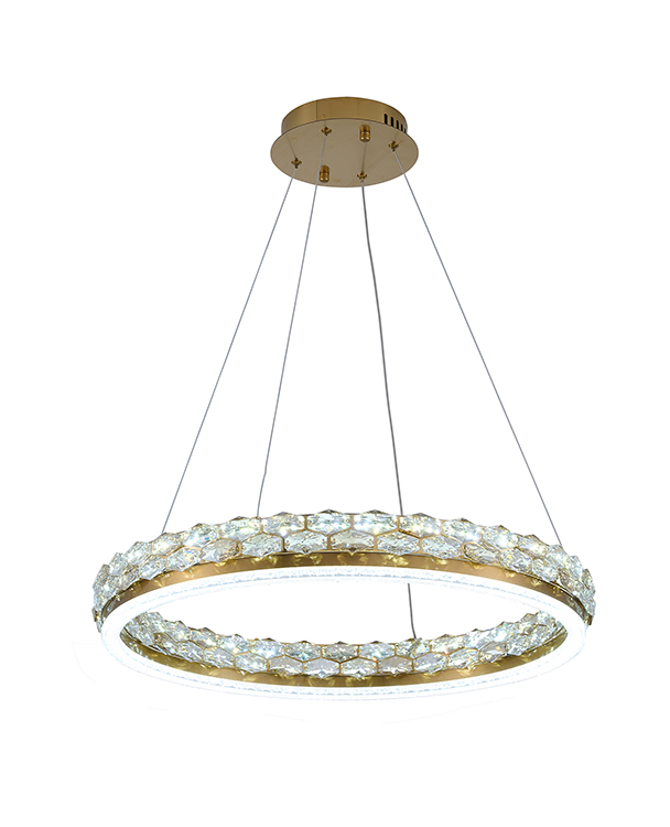 BRASS STAINLESS STEEL LED PENDANT WITH CRYSTAL ACCENTS