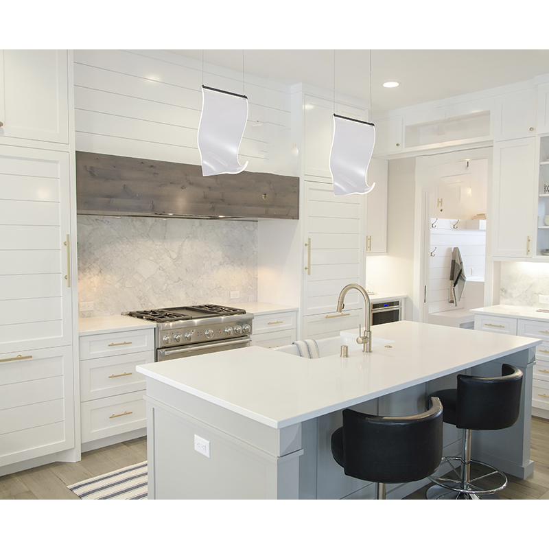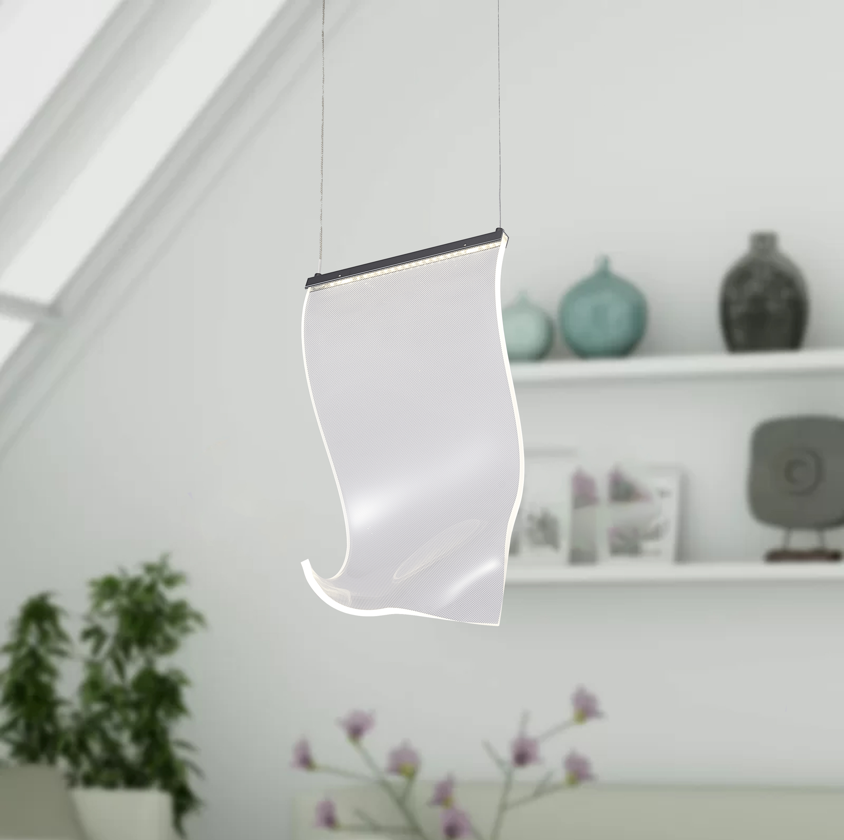 AN ACRYLIC CRUMBLED SHEET PENDANT LIGHT WITH CHROME HARDWARE