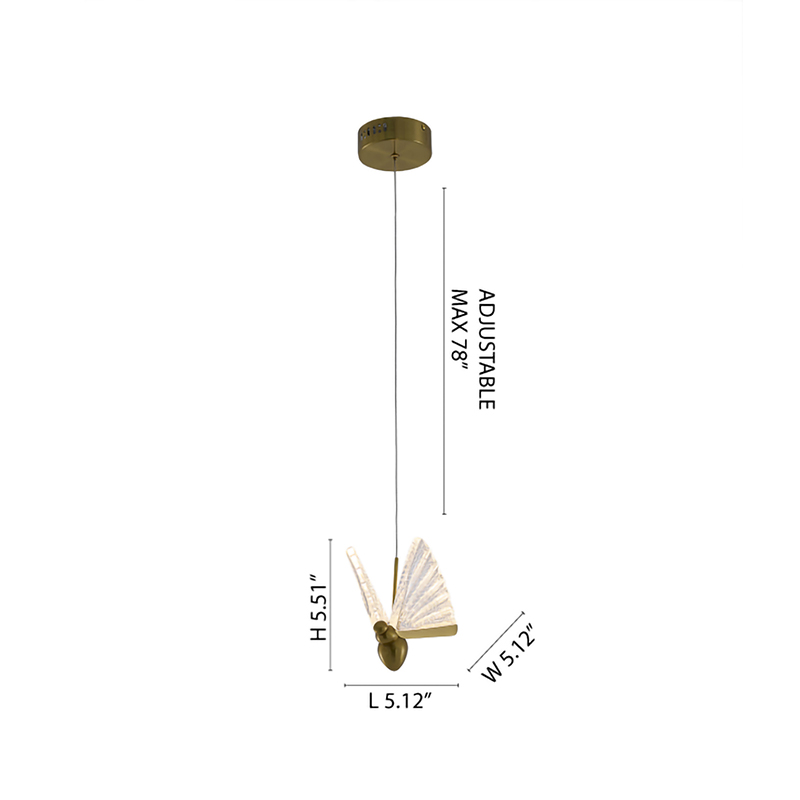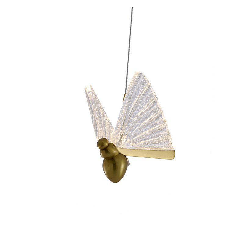 SATIN BRASS LED CONTEMPORARY PENDANT IN A BUTTERFLY SHAPE