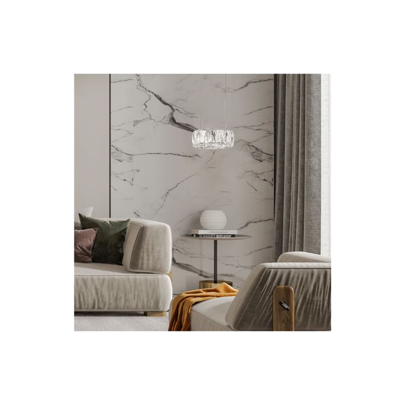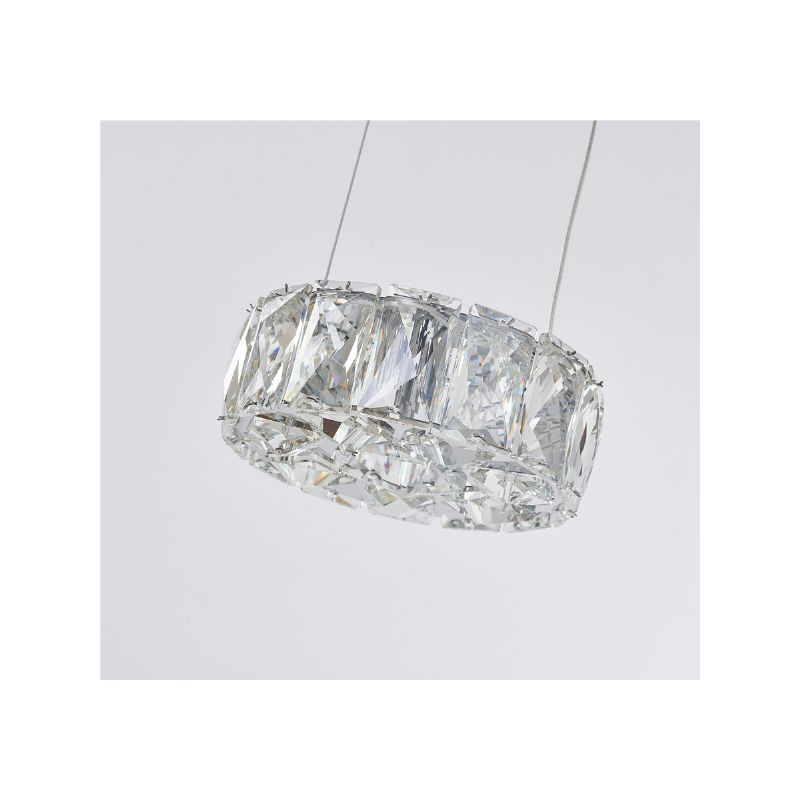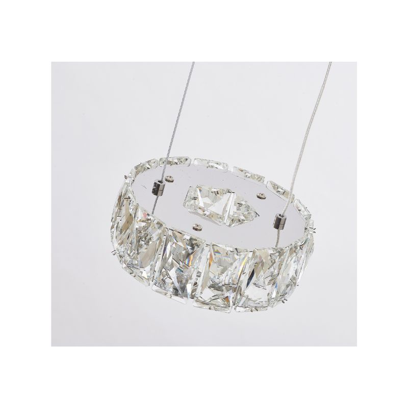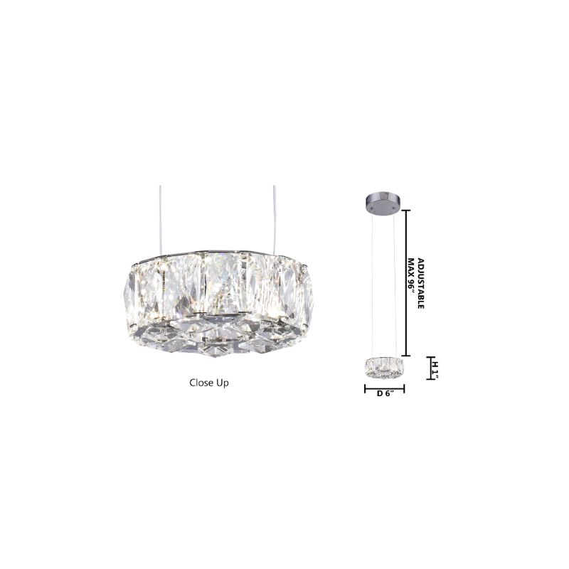 A ROUND CLEAR CRYSTAL PENDANT LIGHT WITH CHROME HARDWARE