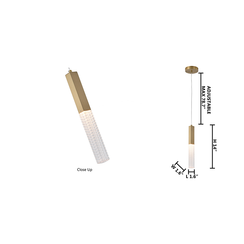 A CHAMPAGNE GOLD BRUSHED FRAME LED PENDANT LIGHT WITH A CLEAR GLASS SHADE