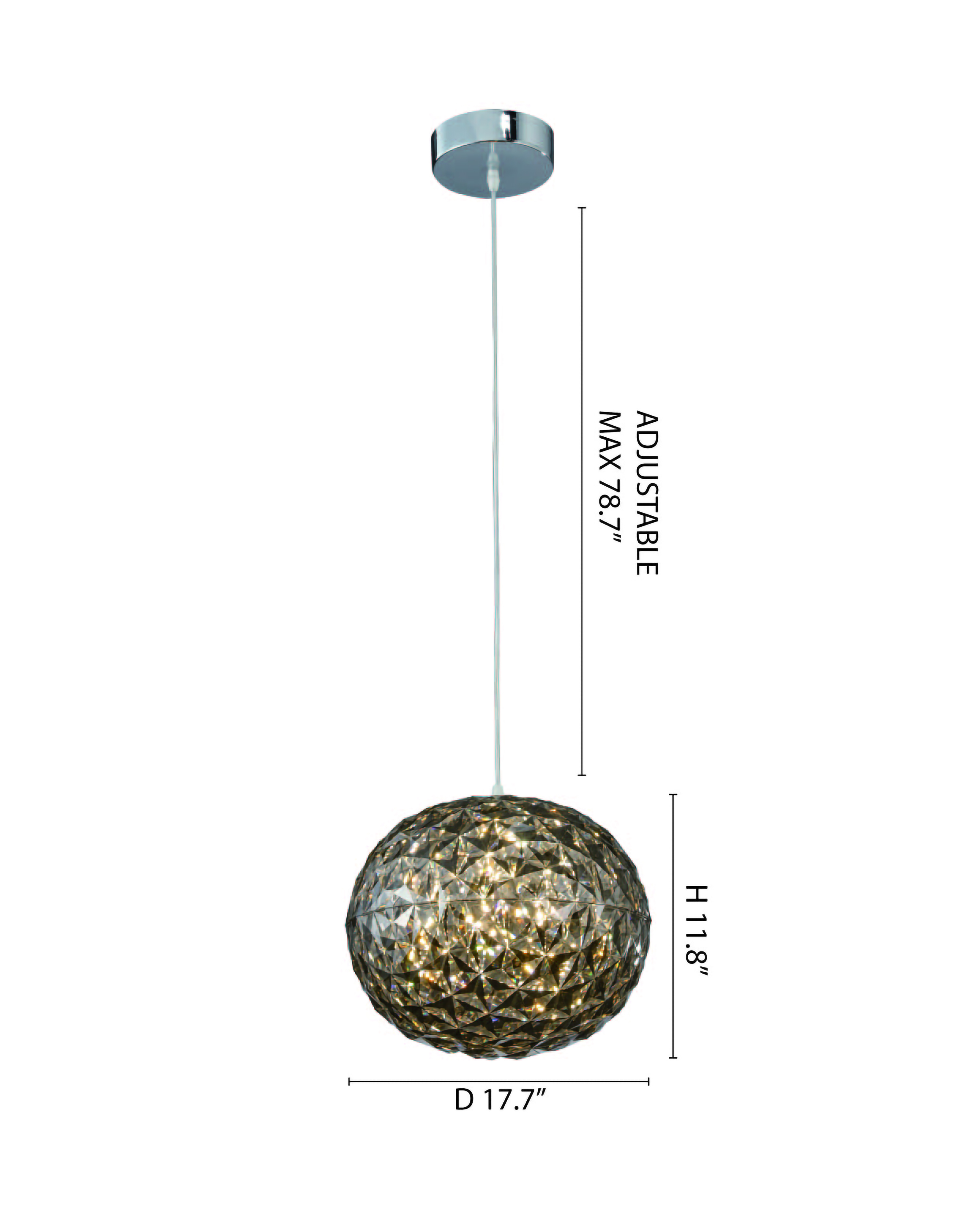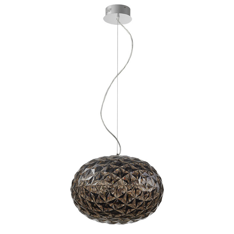 AN ACRYLIC SMOKE COLOR SINGLE PENDANT LIGHT WITH CHROME METAL HARDWARE