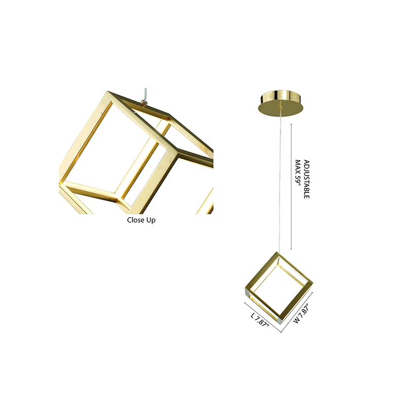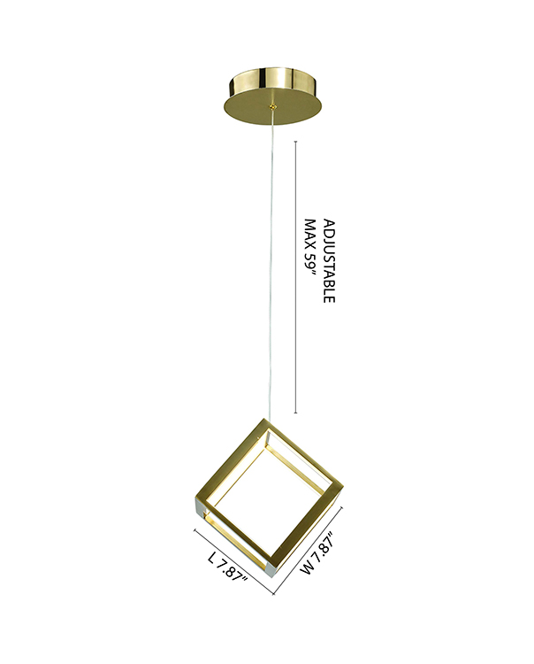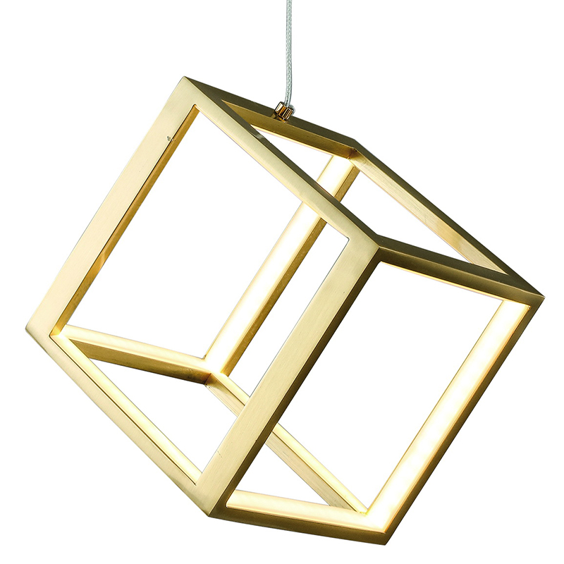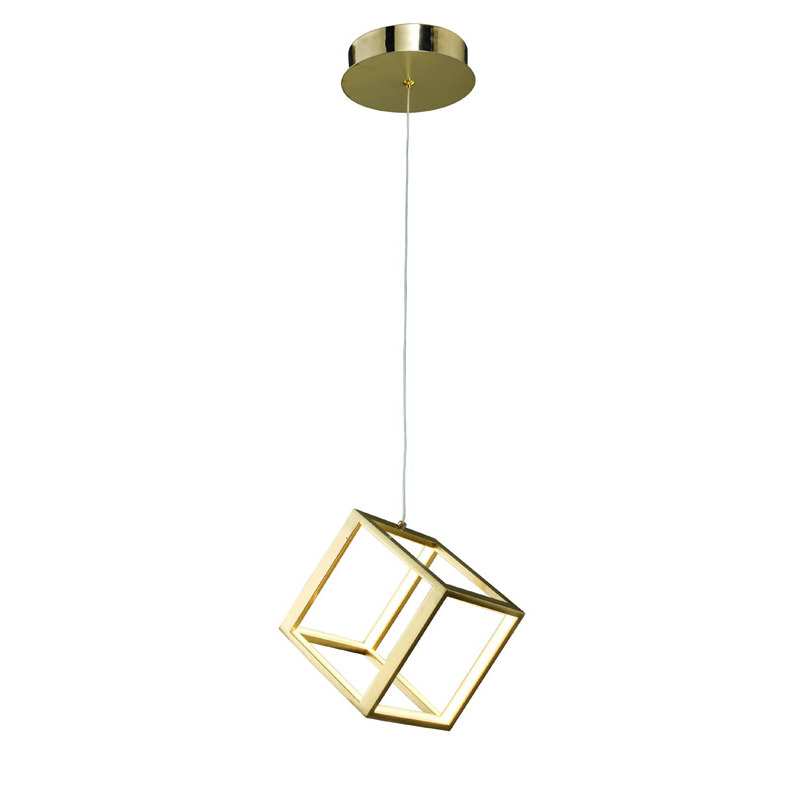 A GOLD LED CUBE SINGLE PENDANT LIGHT WITH WHITE ACRYLIC DIFFUSERS