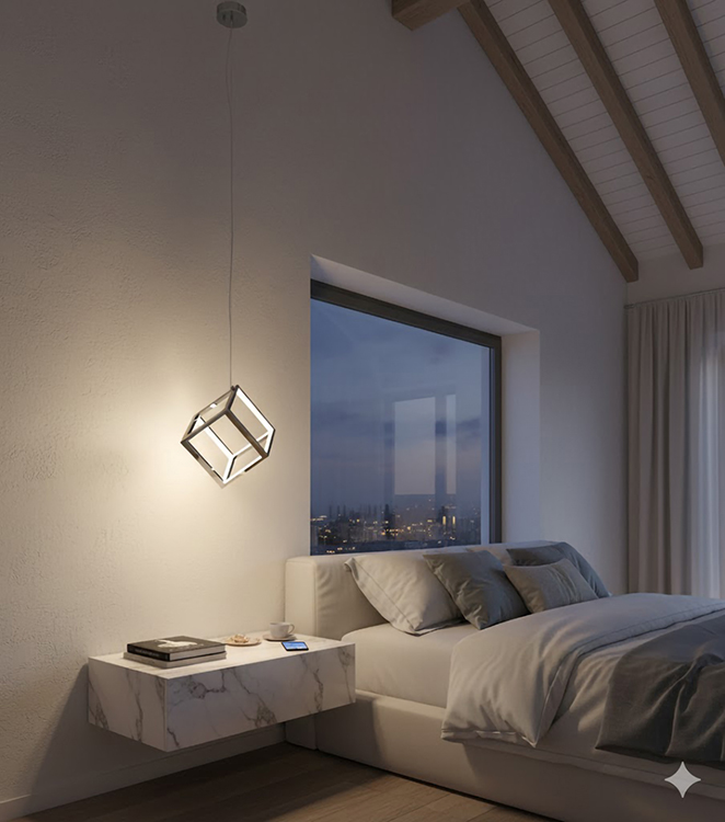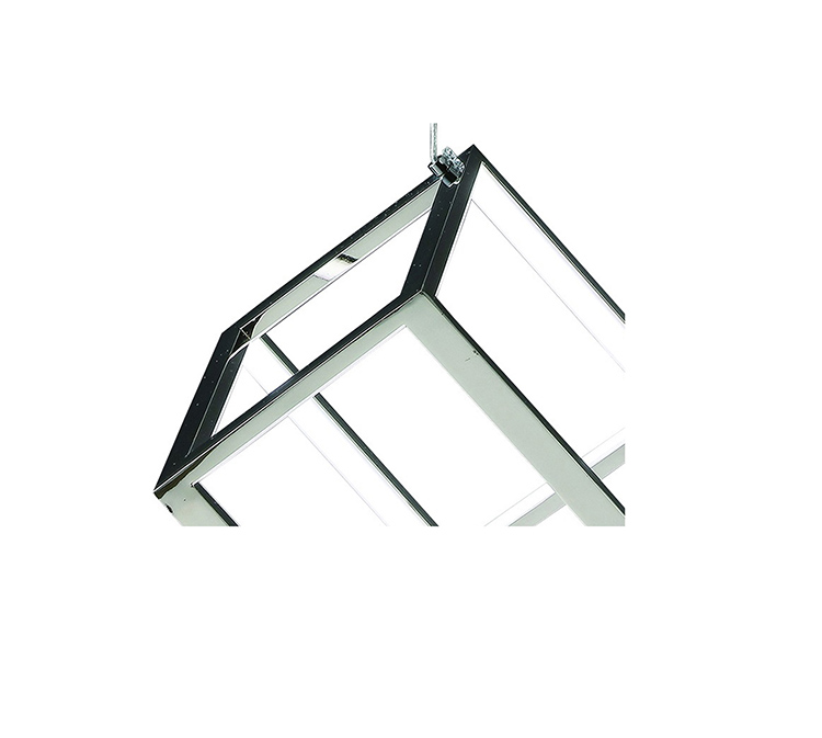 A SHINY NICKEL LED CUBE SINGLE PENDANT LIGHT WITH WHITE ACRYLIC DIFFUSERS
