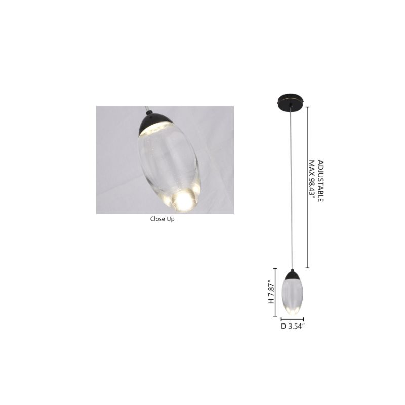 A MATTE BLACK LED SINGLE PENDANT LIGHT WITH A CLEAR CRYSTAL SHADE