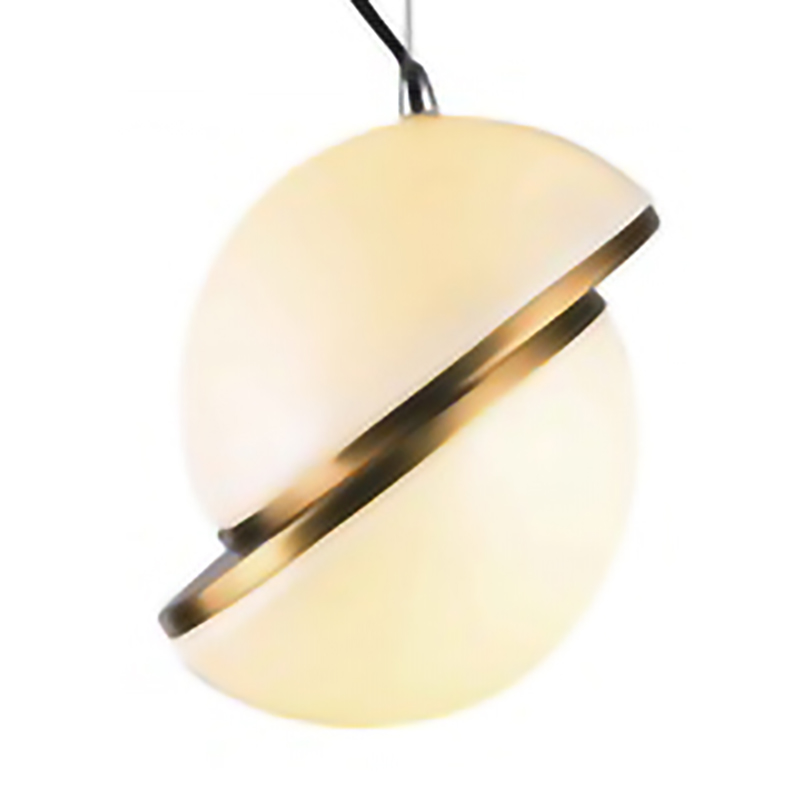 A WHITE FRAME & COPPER STEEL HARDWARE SINGLE PENDANT LED LIGHT