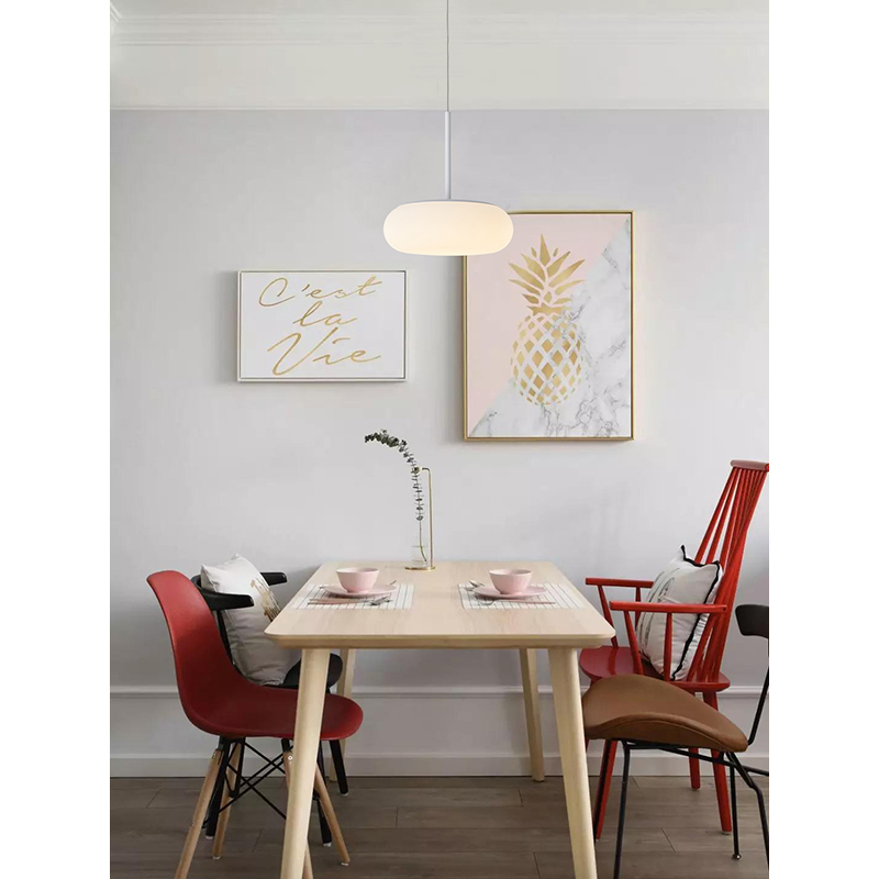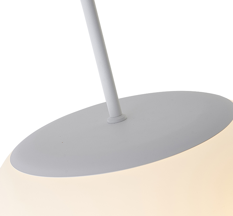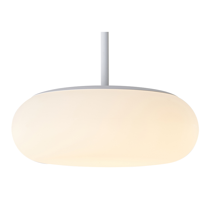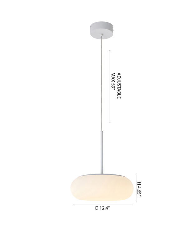 A WHITE PC FRAME LED SINGLE PENDANT LIGHT WITH WHITE STEEL HARDWARE
