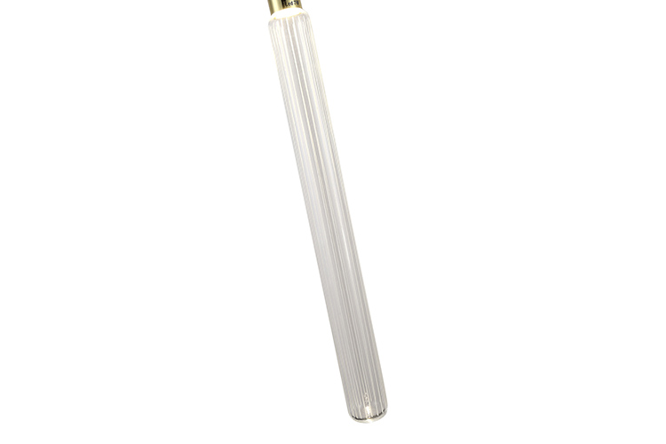A CLEAR GLASS LED PENDANT LIGHT WITH GOLD HARDWARE