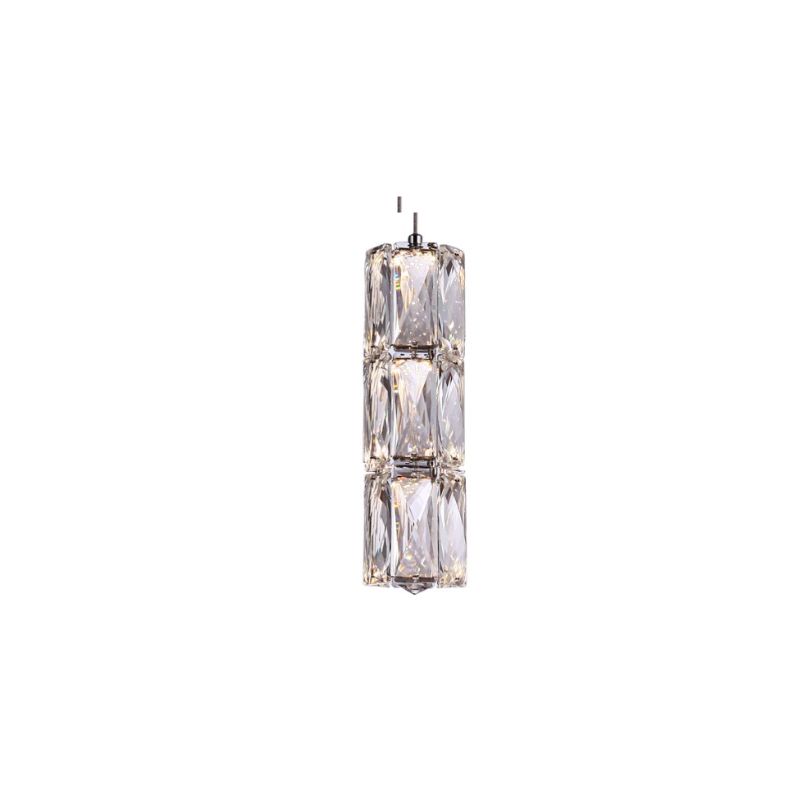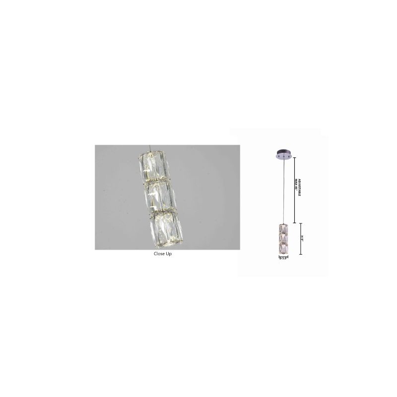 A CLEAR CRYSTAL SINGLE PENDANT LED LIGHT WITH CHROME HARDWARE