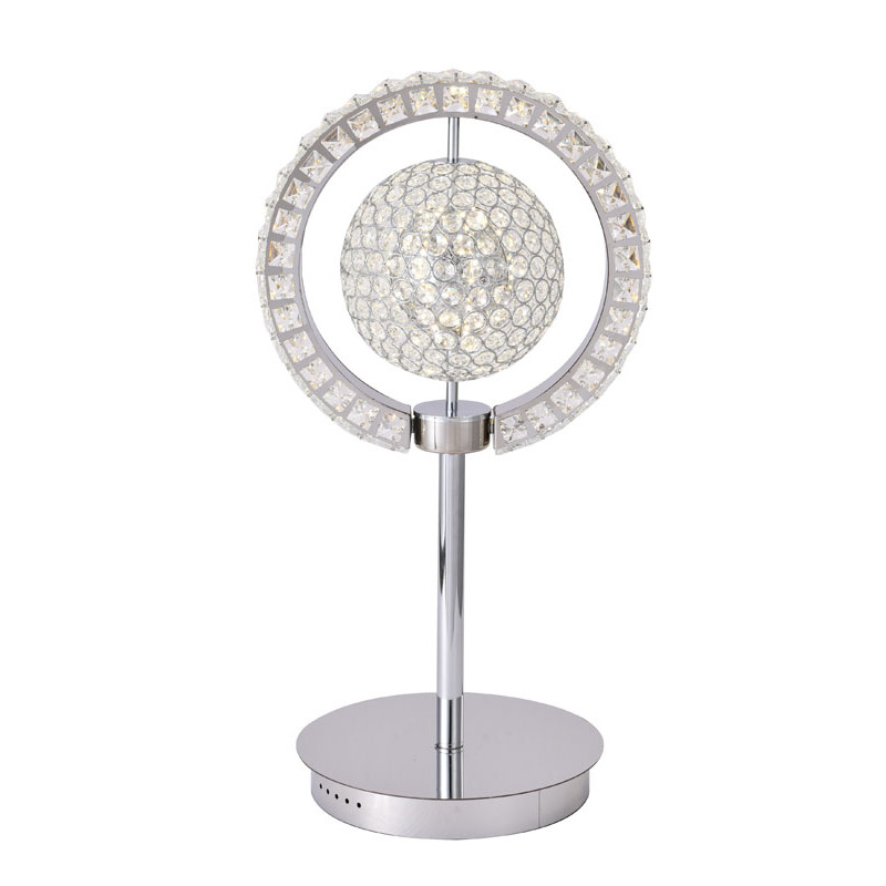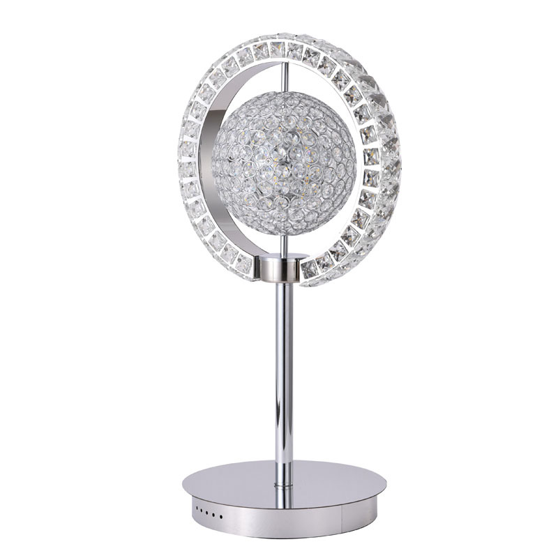 A CHROME FRAME ORB TABLE LAMP WITH CLEAR CRYSTALS