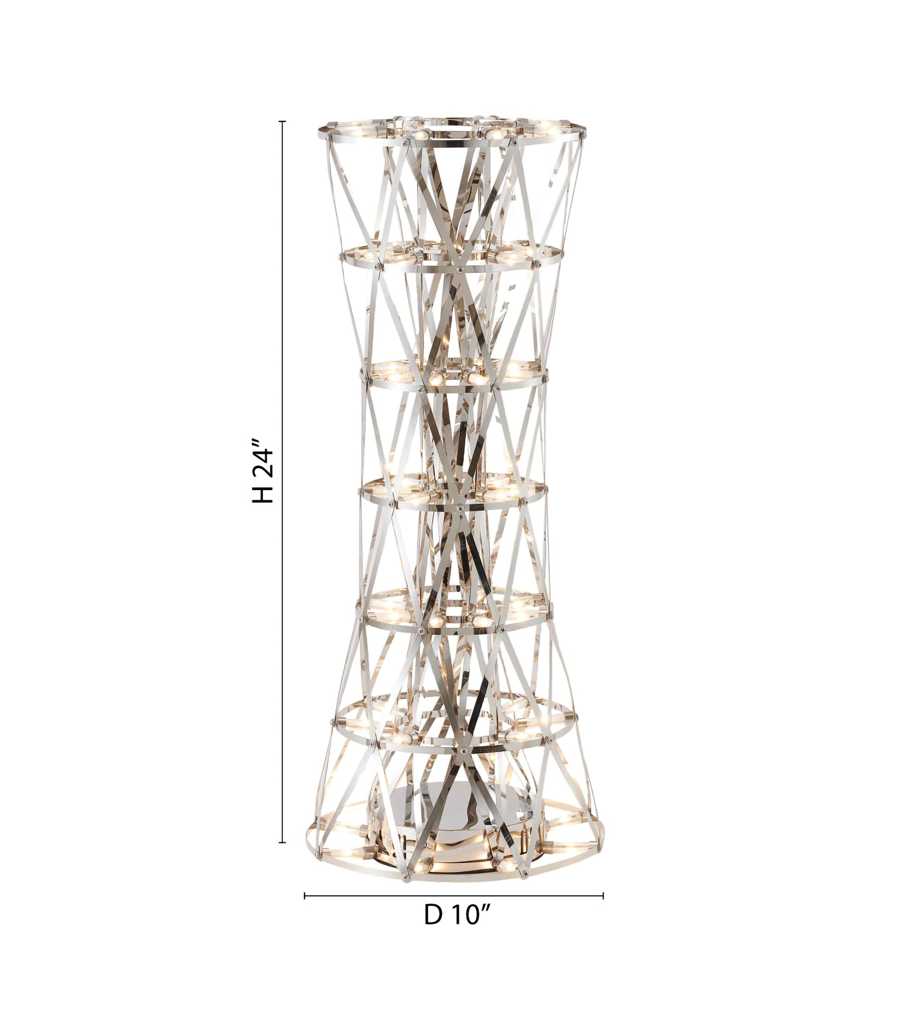 A CHROME STAINLESS STEEL COLUMN TABLE LAMP