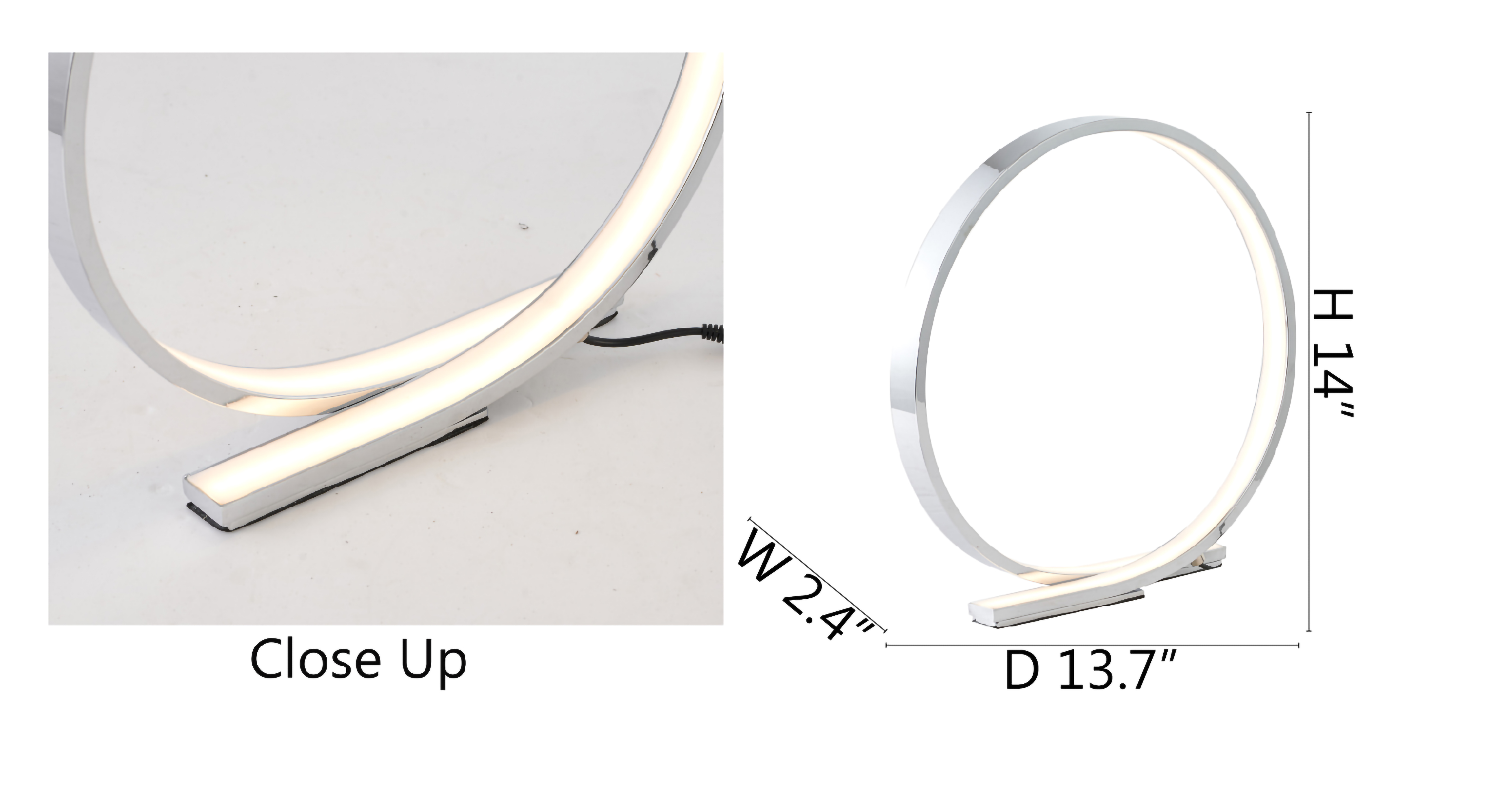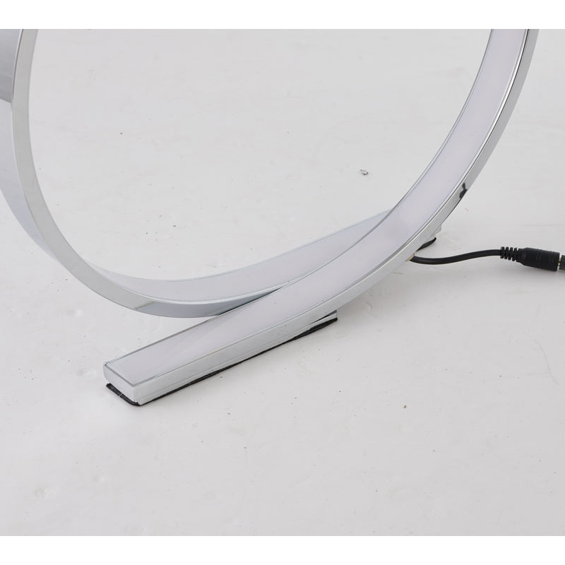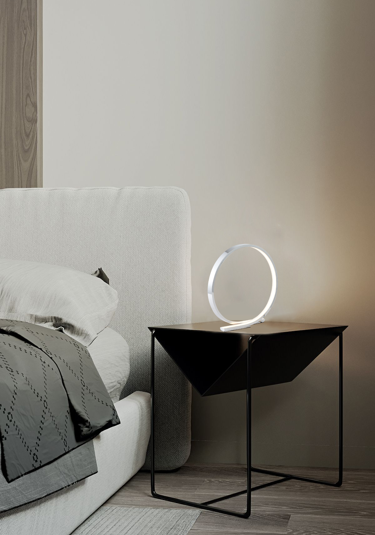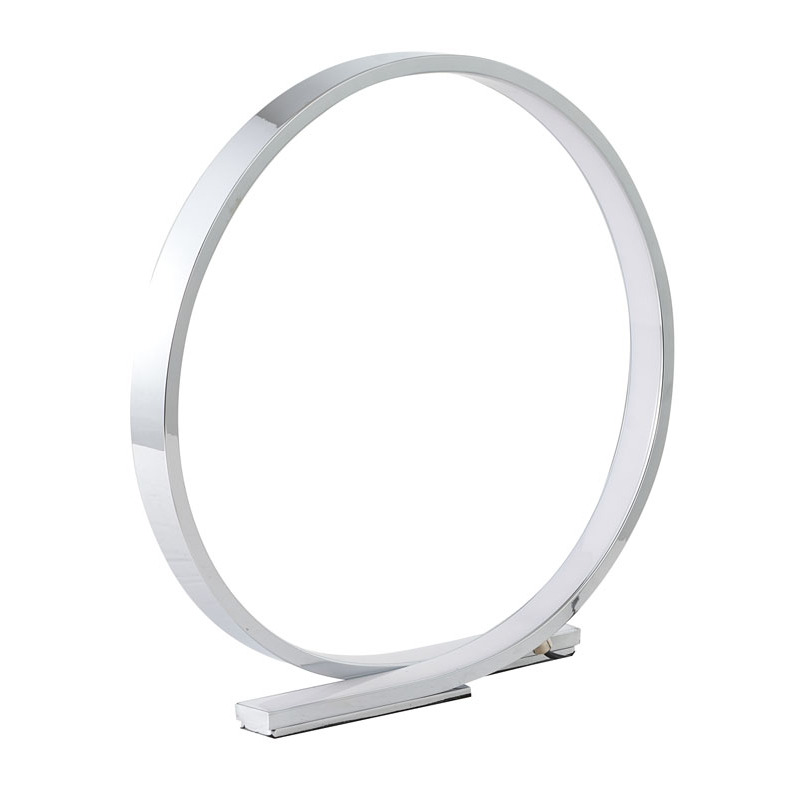 A CHROME ROUND LED TABLE LAMP WITH A WHITE ACRYLIC DIFFUSER