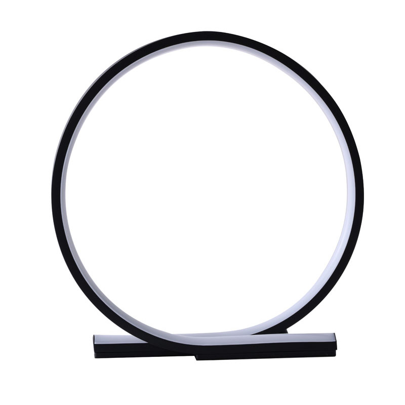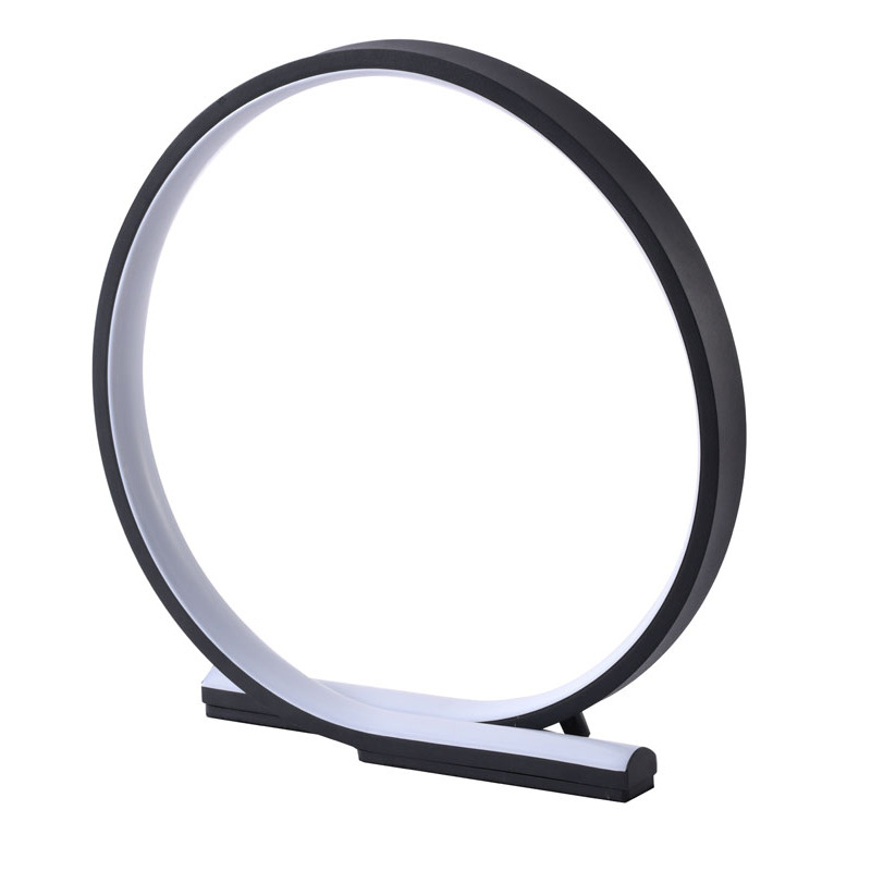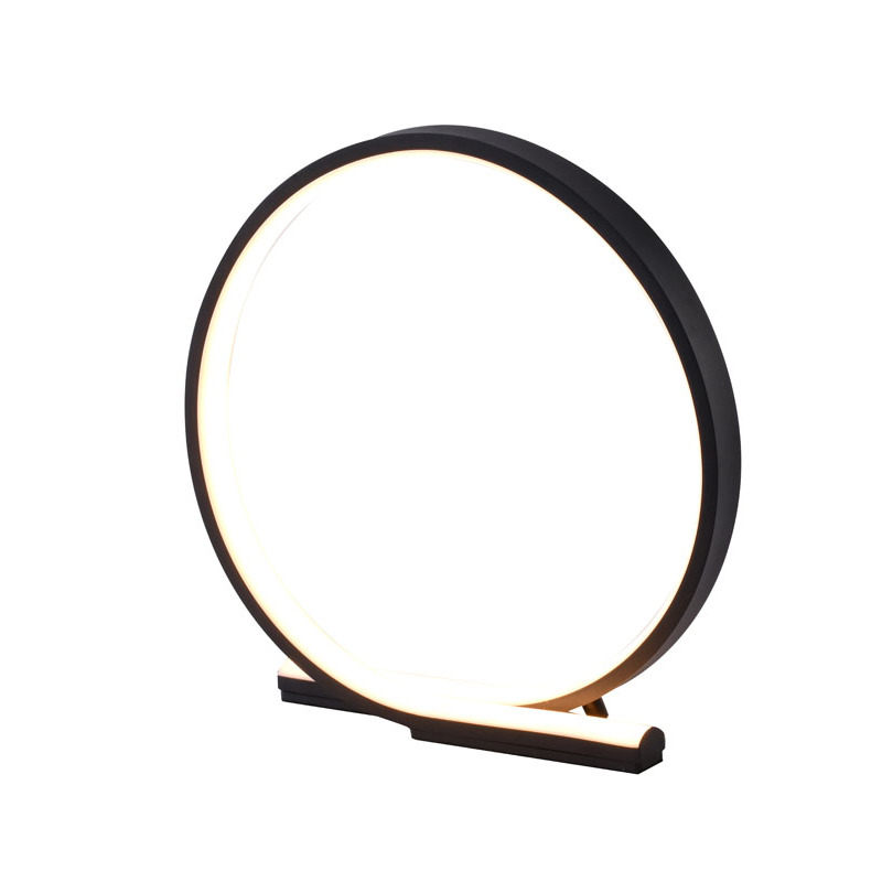 A MATTE BLACK ROUND LED TABLE LAMP WITH A WHITE ACRYLIC DIFFUSER