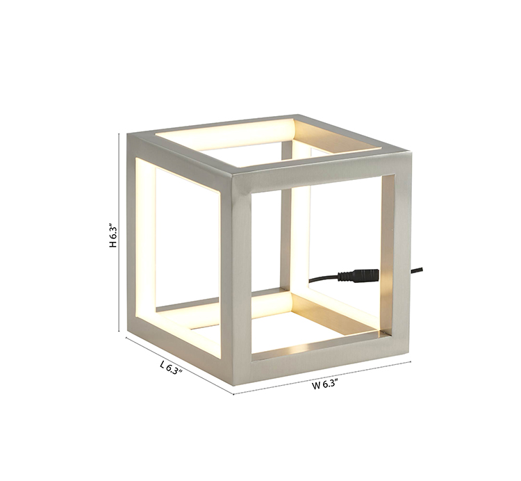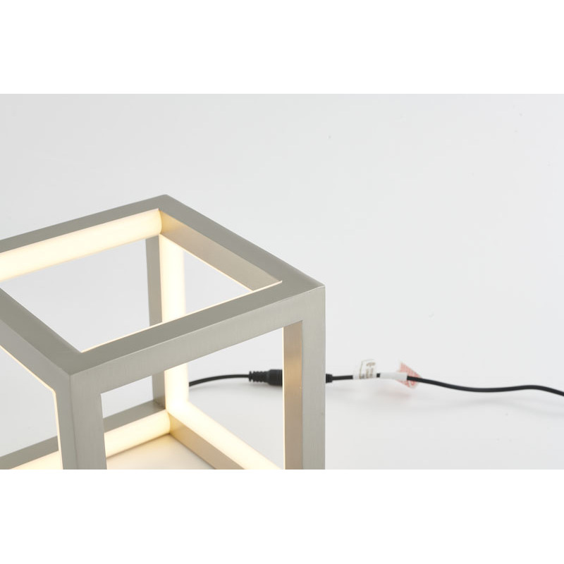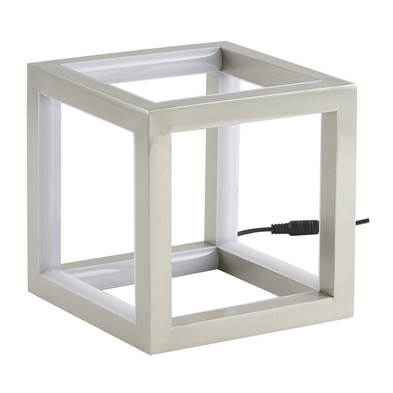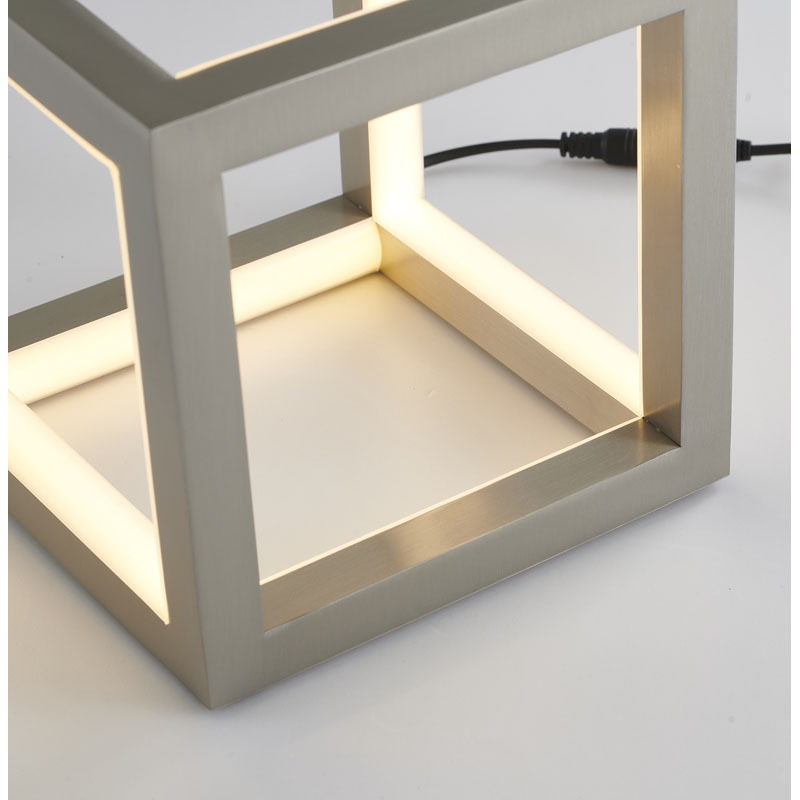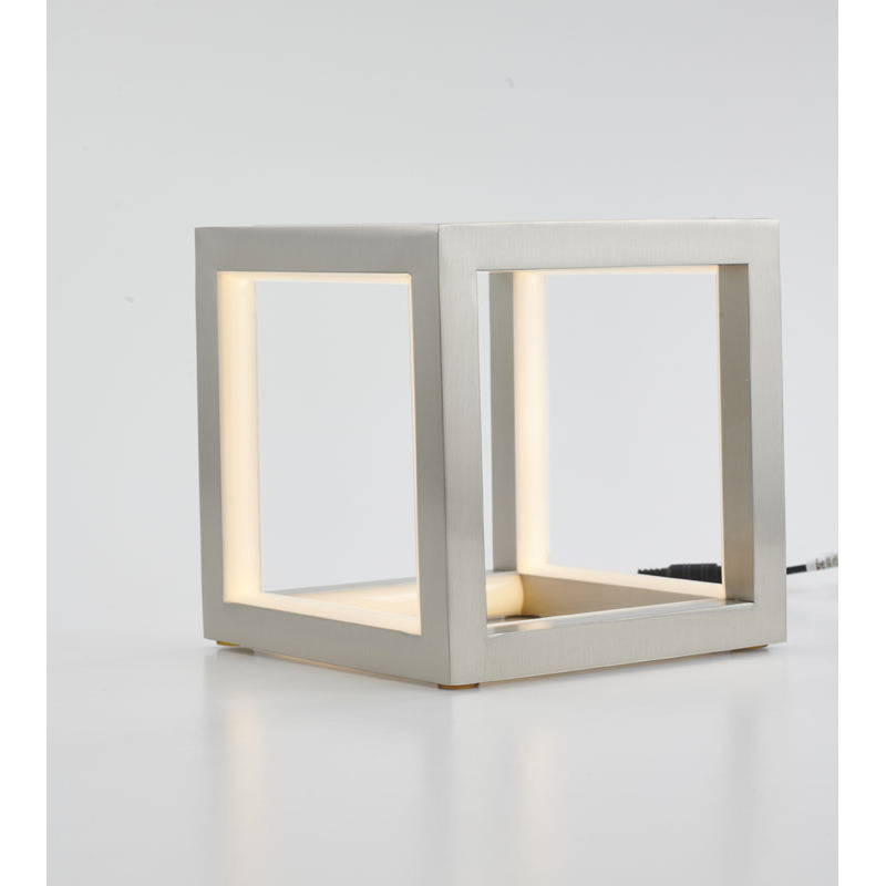A NICKEL LED BOX TABLE LAMP WITH A SILICONE WHITE DIFFUSER